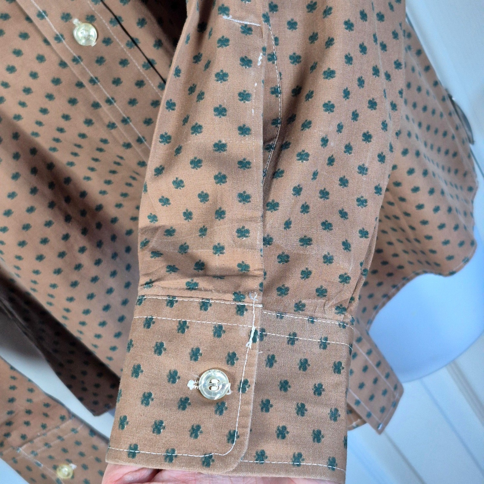 как выглядит Vintage 1970s Manhattan button down dress shirt union made tan men