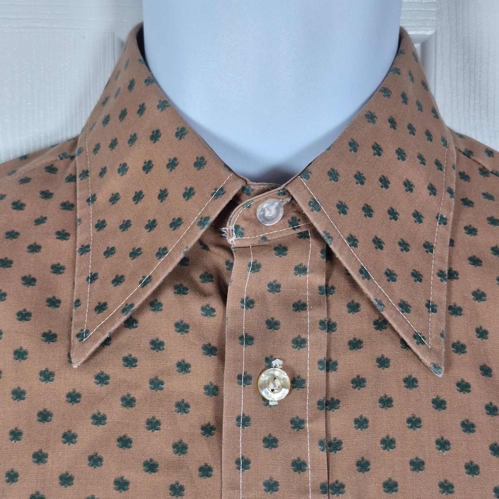 как выглядит Vintage 1970s Manhattan button down dress shirt union made tan mens 15 1/2 - 33 фото