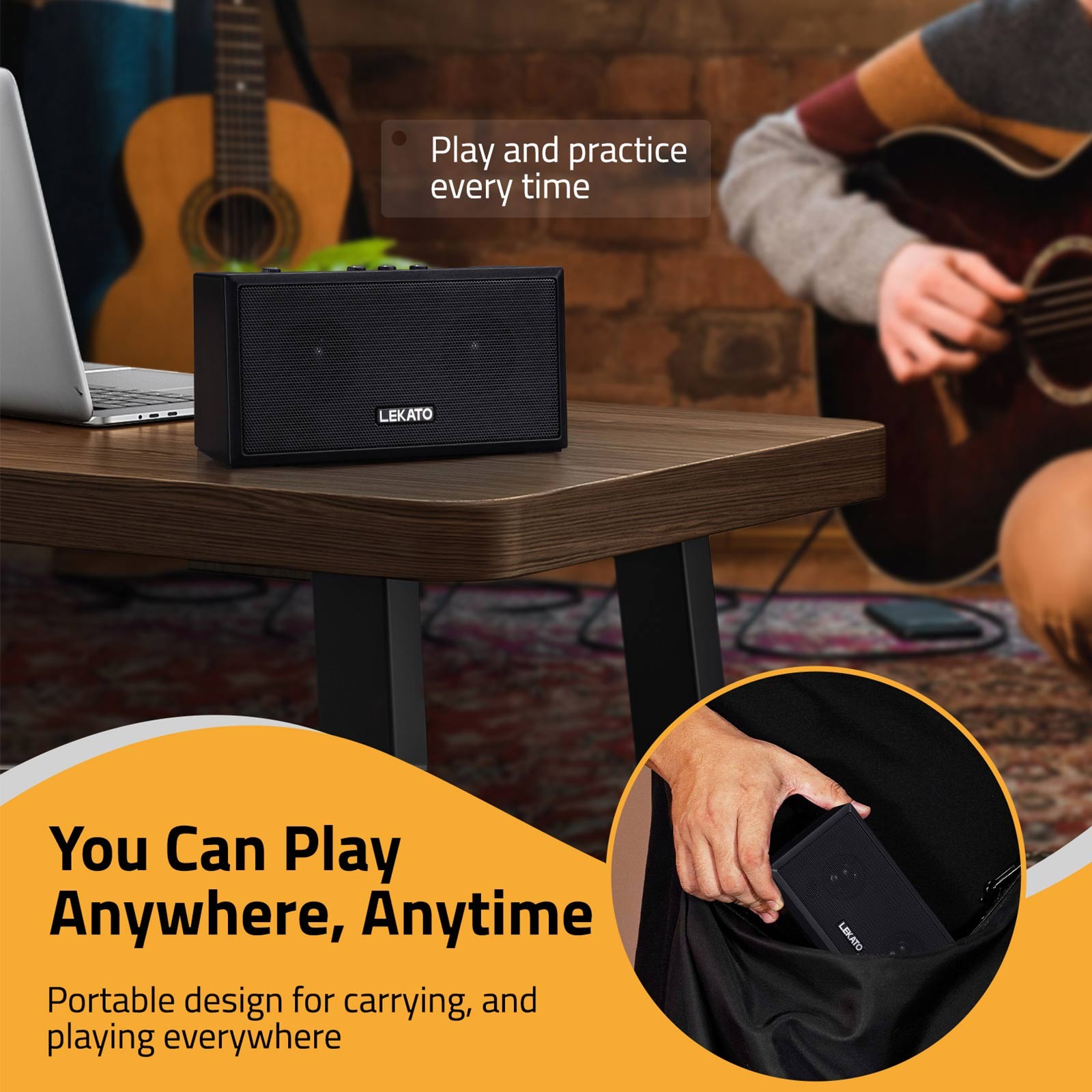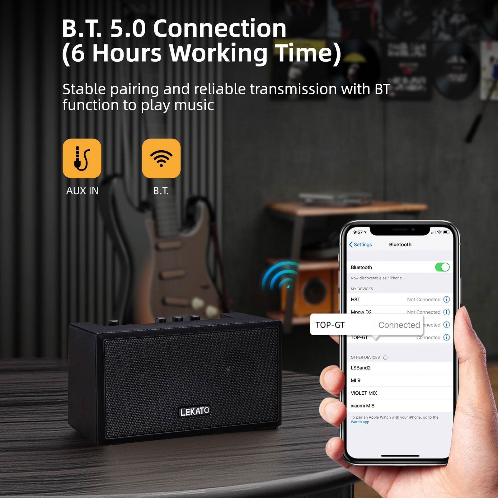 LEKATO Mini Wireless Guitar Bass Amp Bluetooth Amplifier Clean Overdrive Modes