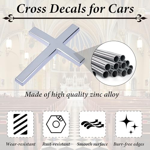 Metal Cross Decals for Cars, 2.5 1.8 Christian Car Emblem Badge Silver
