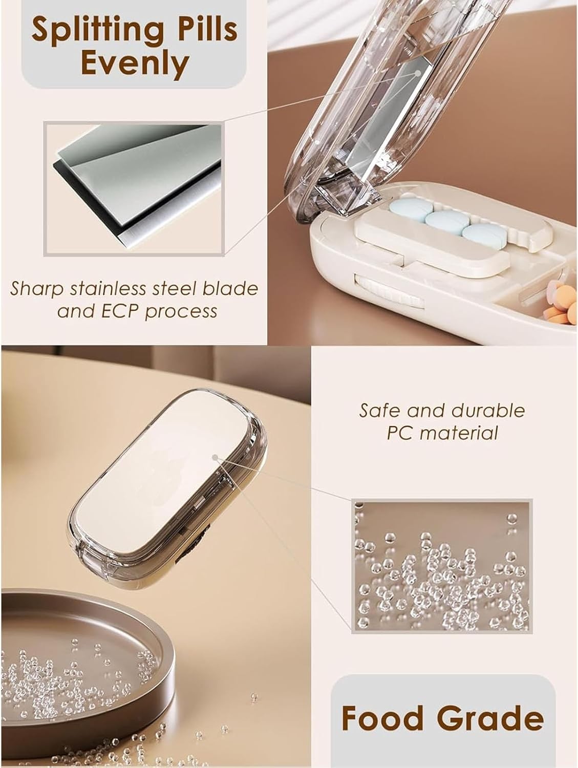 Pill Cutter for Cutting Multiple, Portable Pills Splitter for Large Small Pills