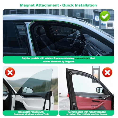 Car Window Shades, Driver Window Sun Shade, Upgraded Magnetic Side Black Mesh