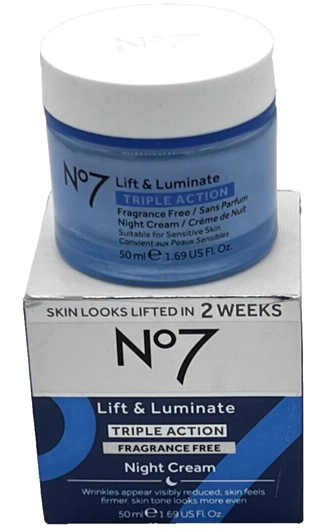 No7 Lift Luminate Triple Action Night Cream Reduces Wrinkles/Firms Skin NEW