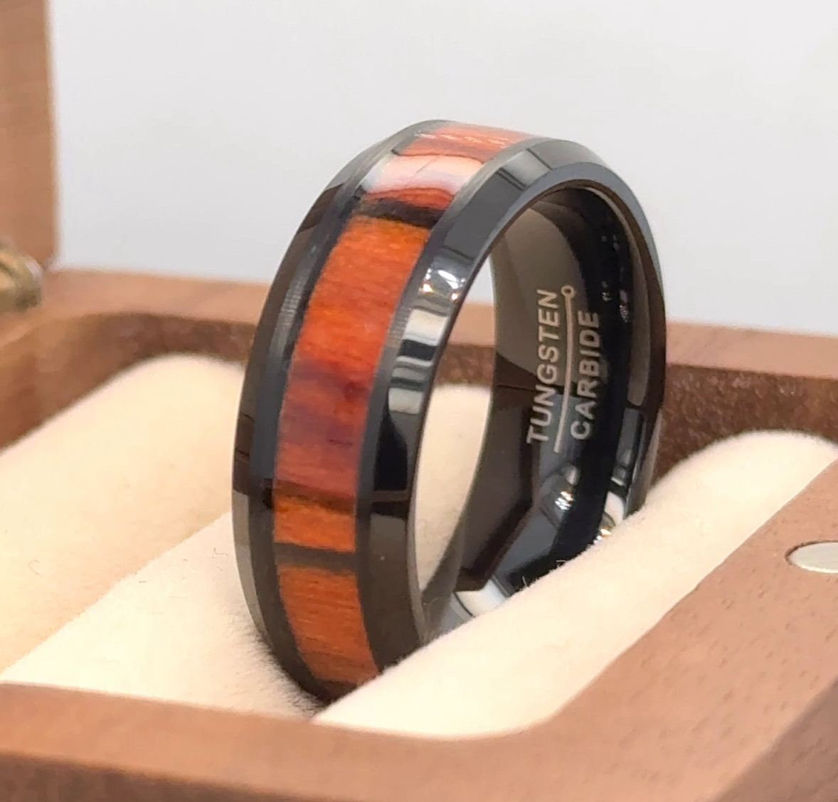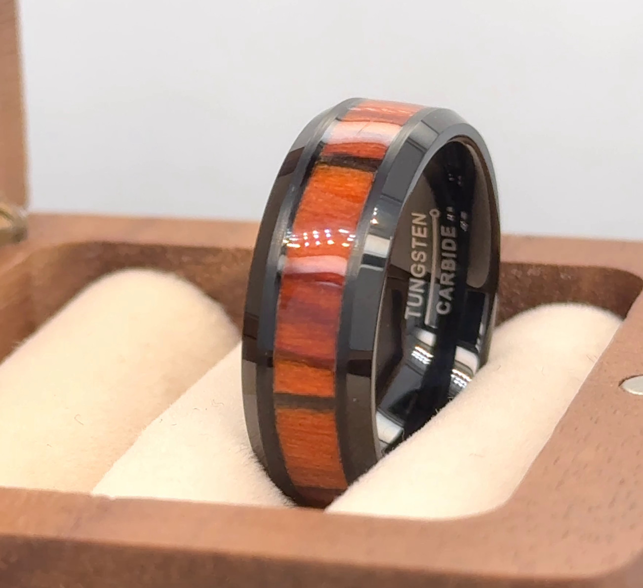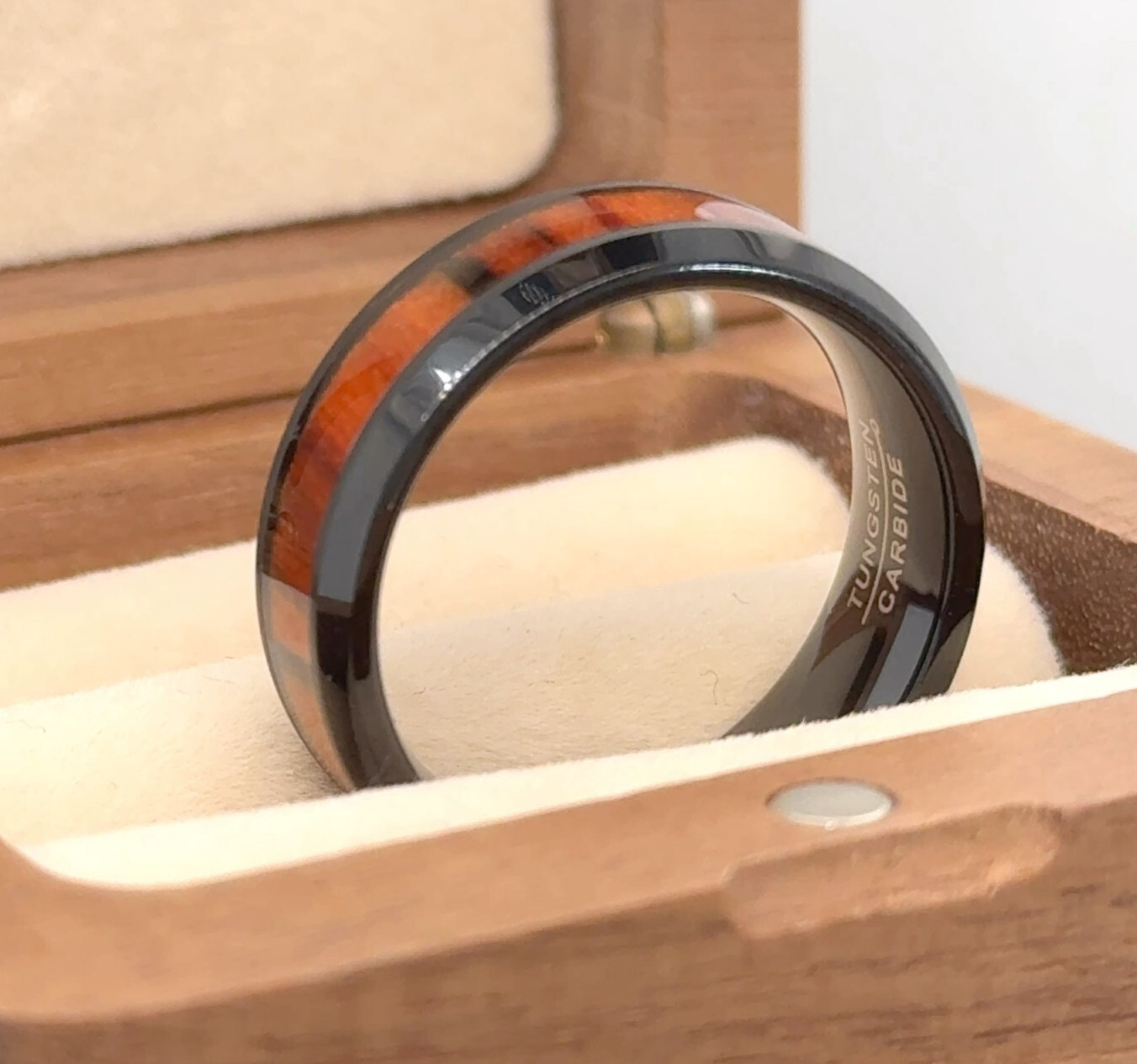 Black Tungsten Personalized Band Dark Mahogany Wood Ring Gift For Boyfriend
