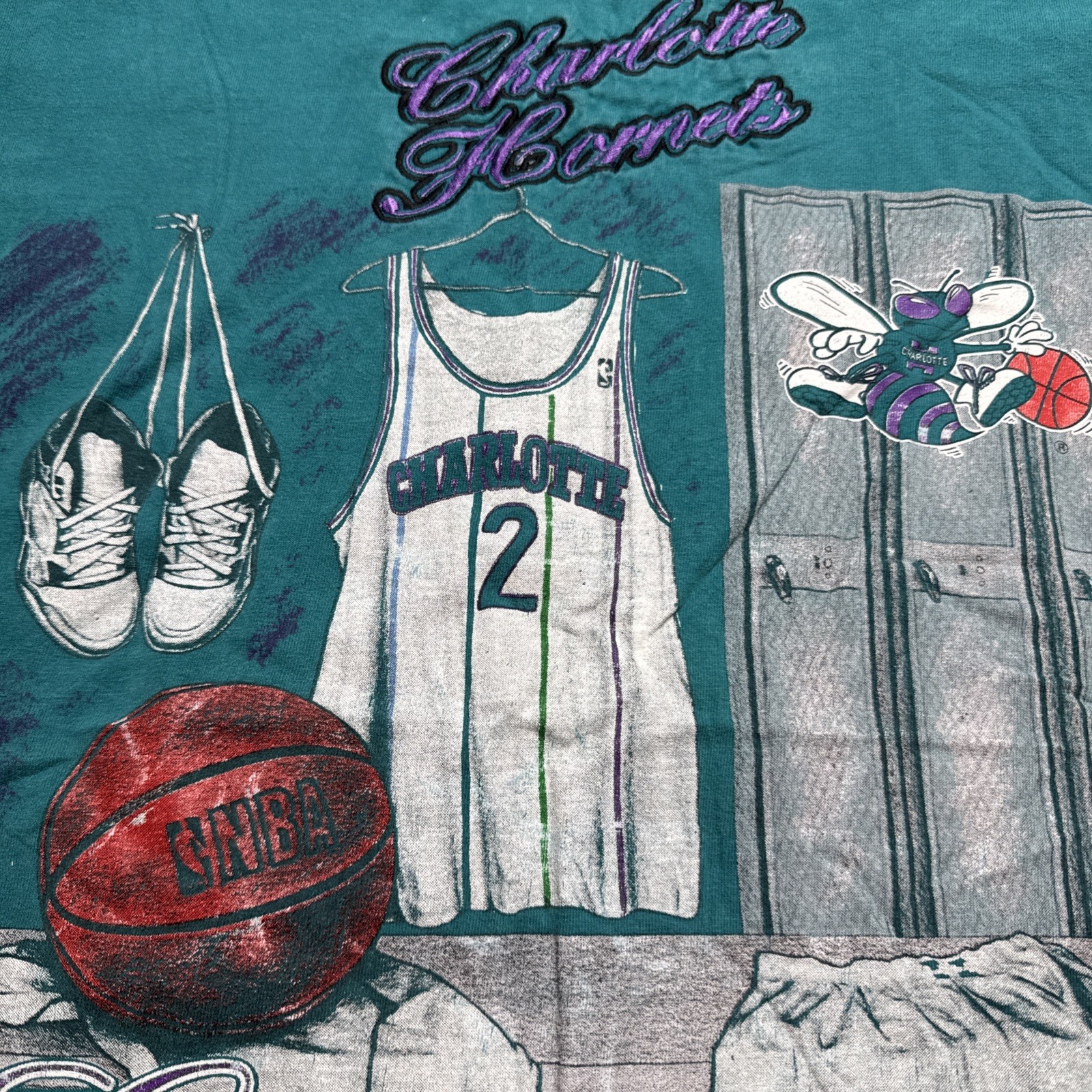 Vintage Charlotte Hornets Single Stitch Sz Large T-Shirt Nutmeg Mills Buzz USA