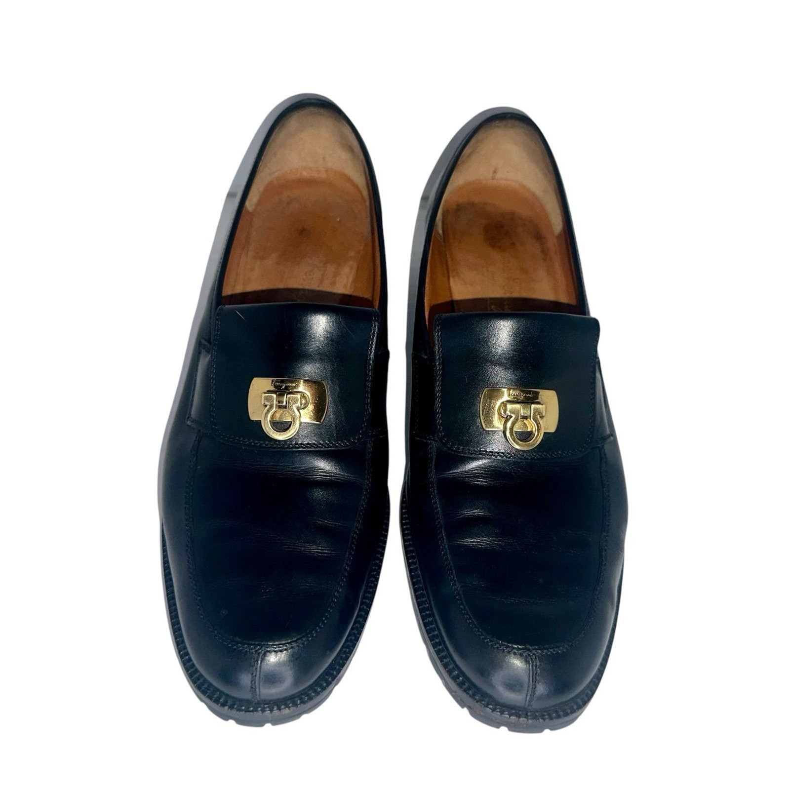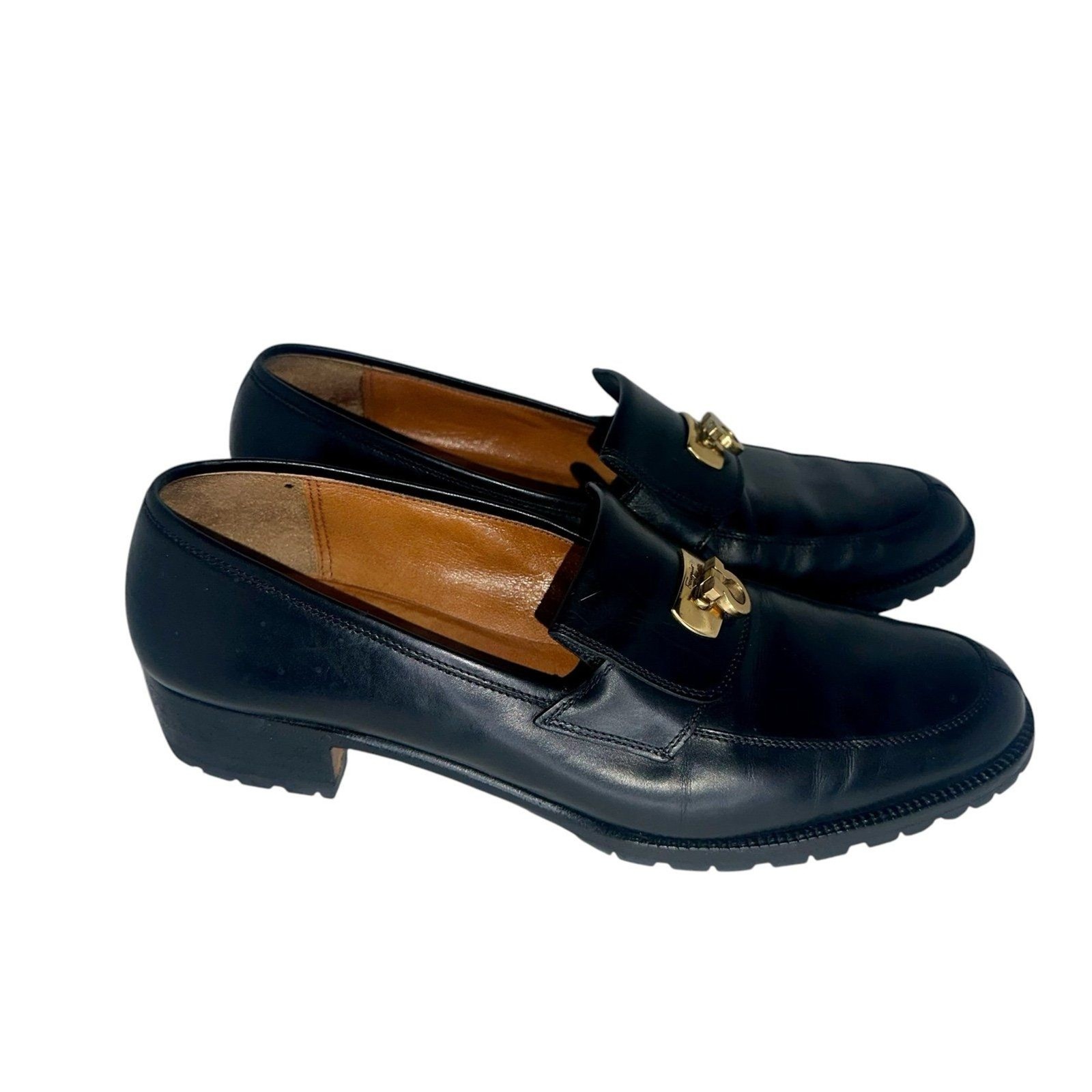 Salvatore Ferragamo Black Ketty Loafers Women s 7B Gancini Logo Vintage