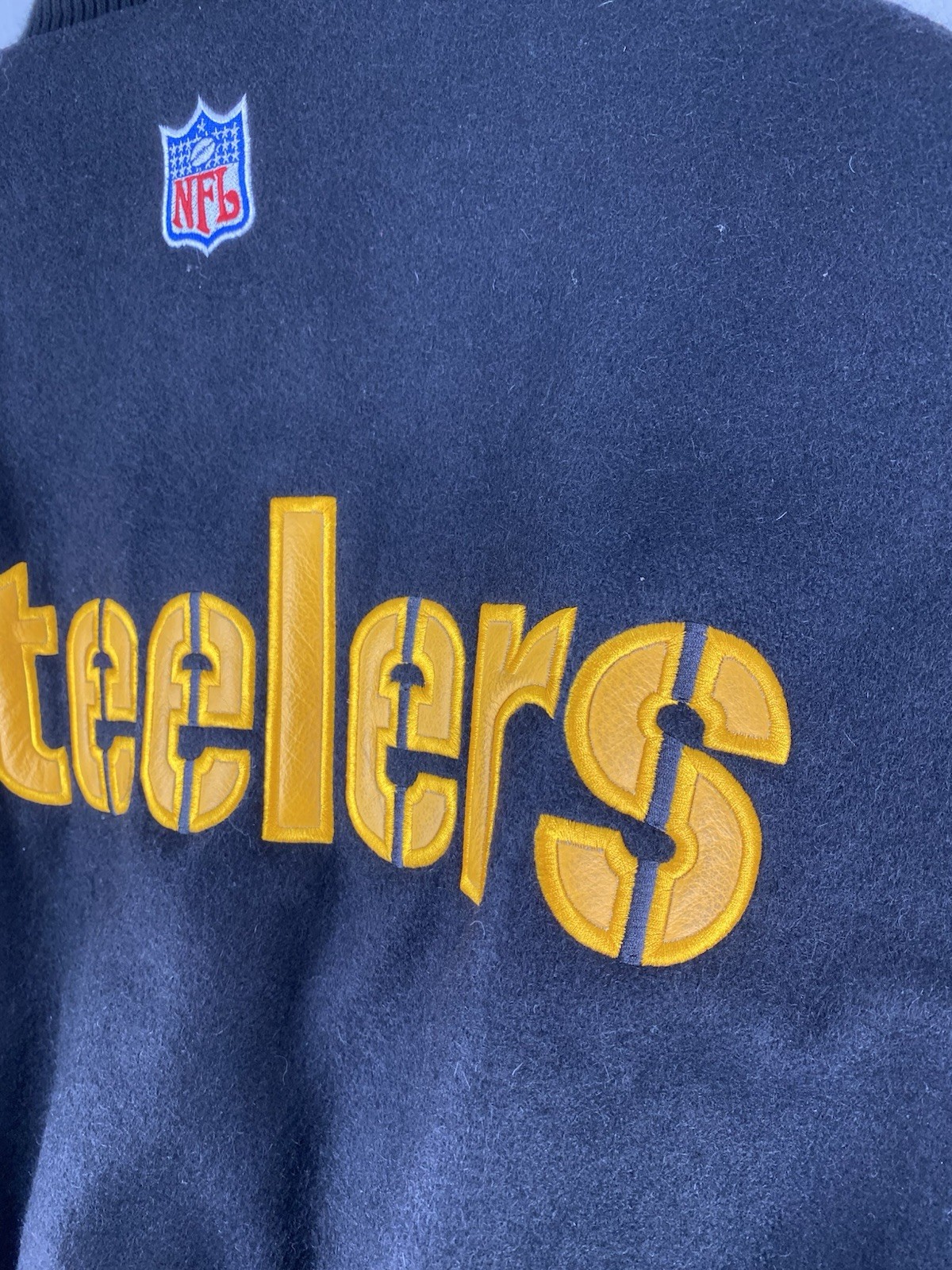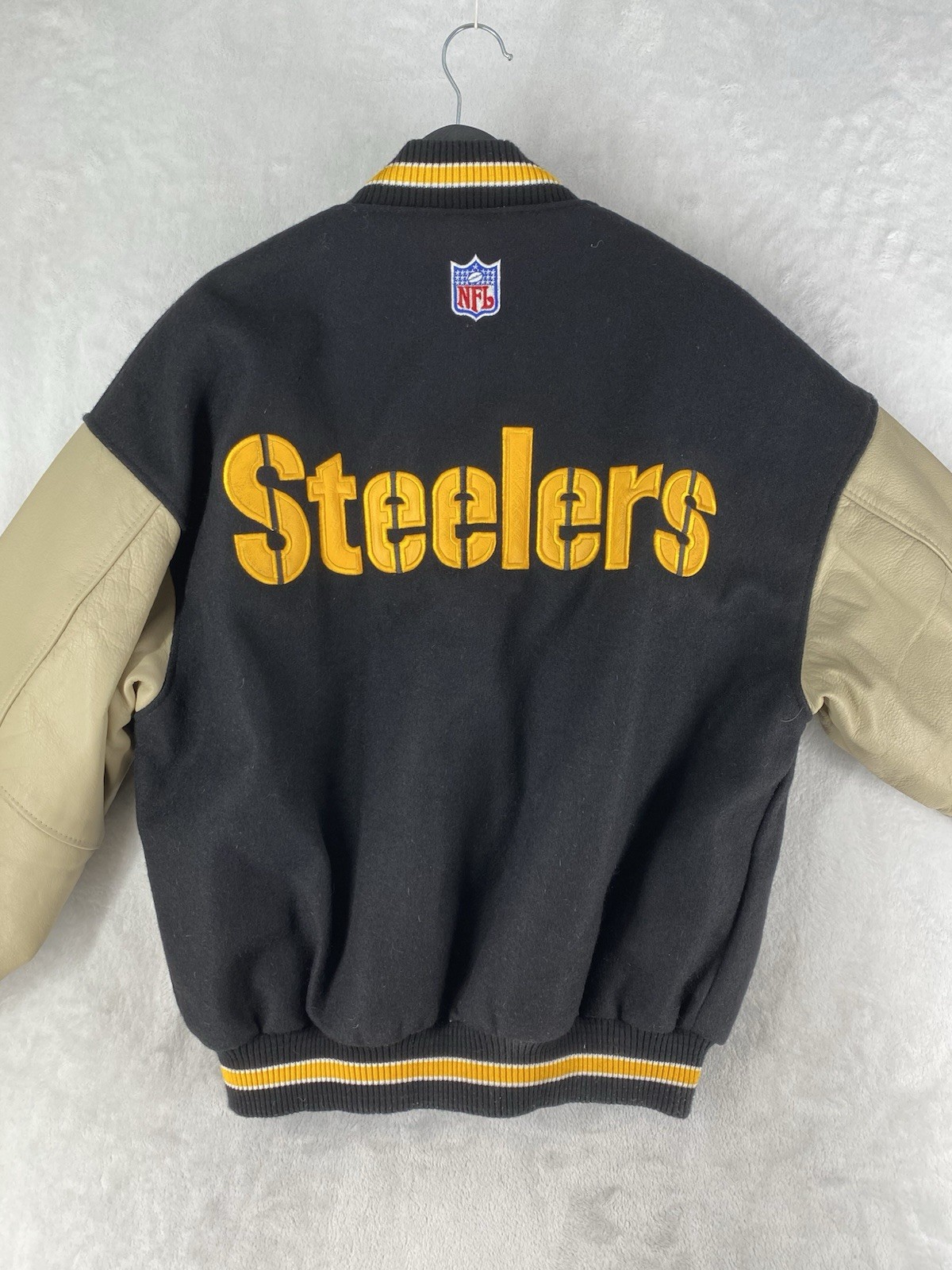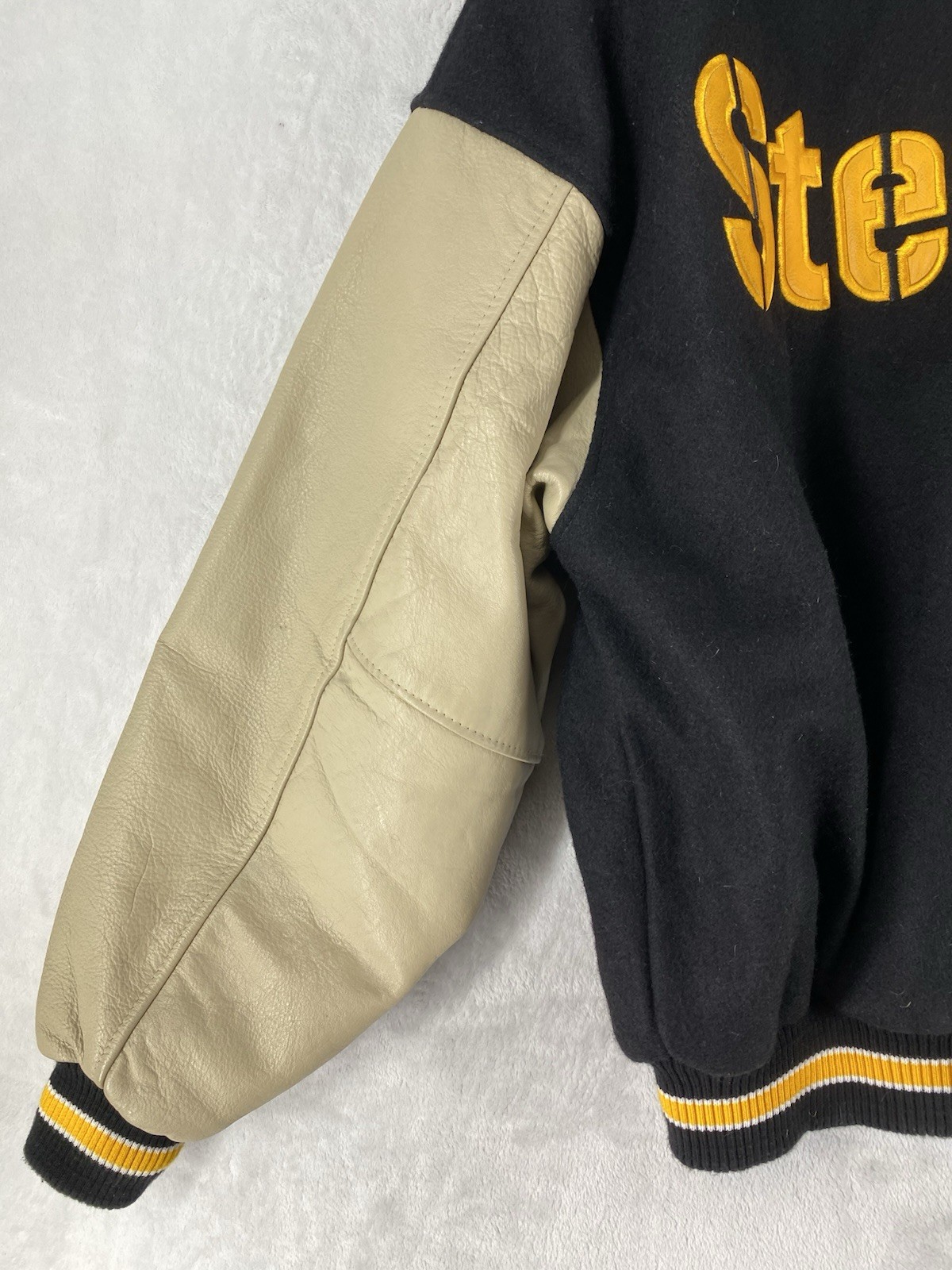 Vintage Nike Pittsburgh Steeler Jacket Mens MediumLetterman Varsity Wool Leather