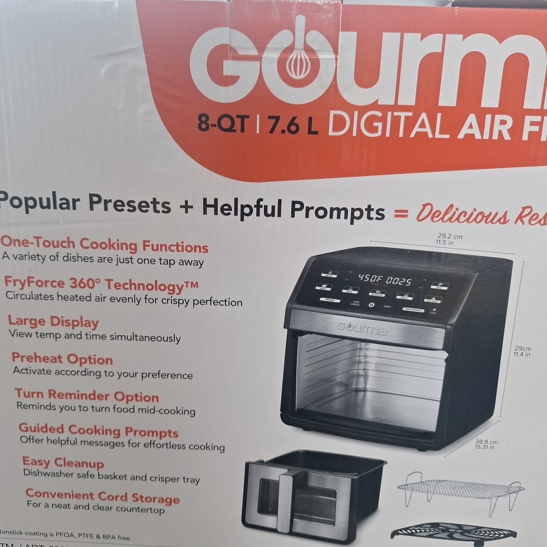 Gourmia 8 Quart Digital Electric Air Fryer 450F Guided Cooking Prompts