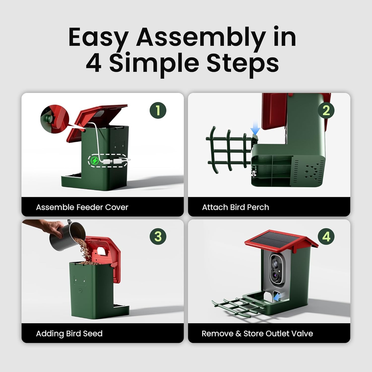 Smart Bird Feeder with Camera Solar Powered, 2K HD Video, AI Bird Species Identi