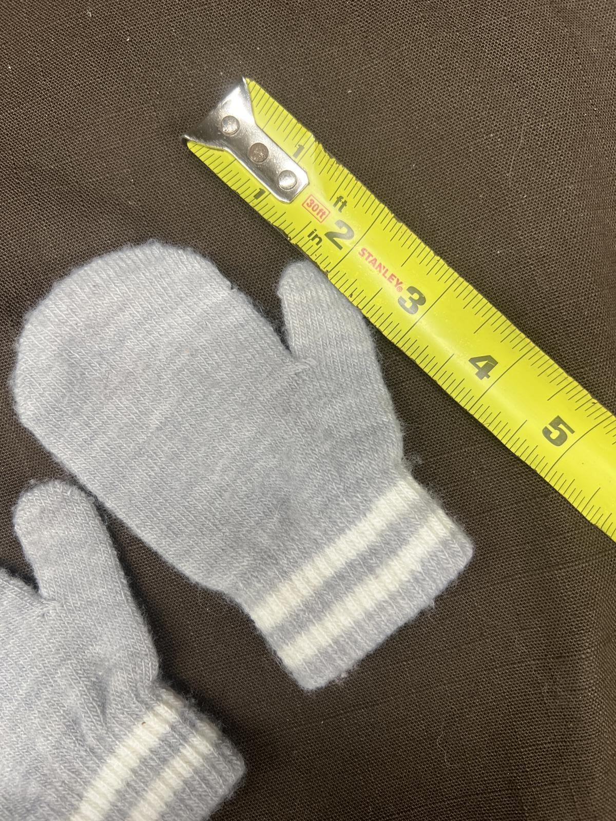 как выглядит Light Gray Knit Baby Mittens with White Stripes фото