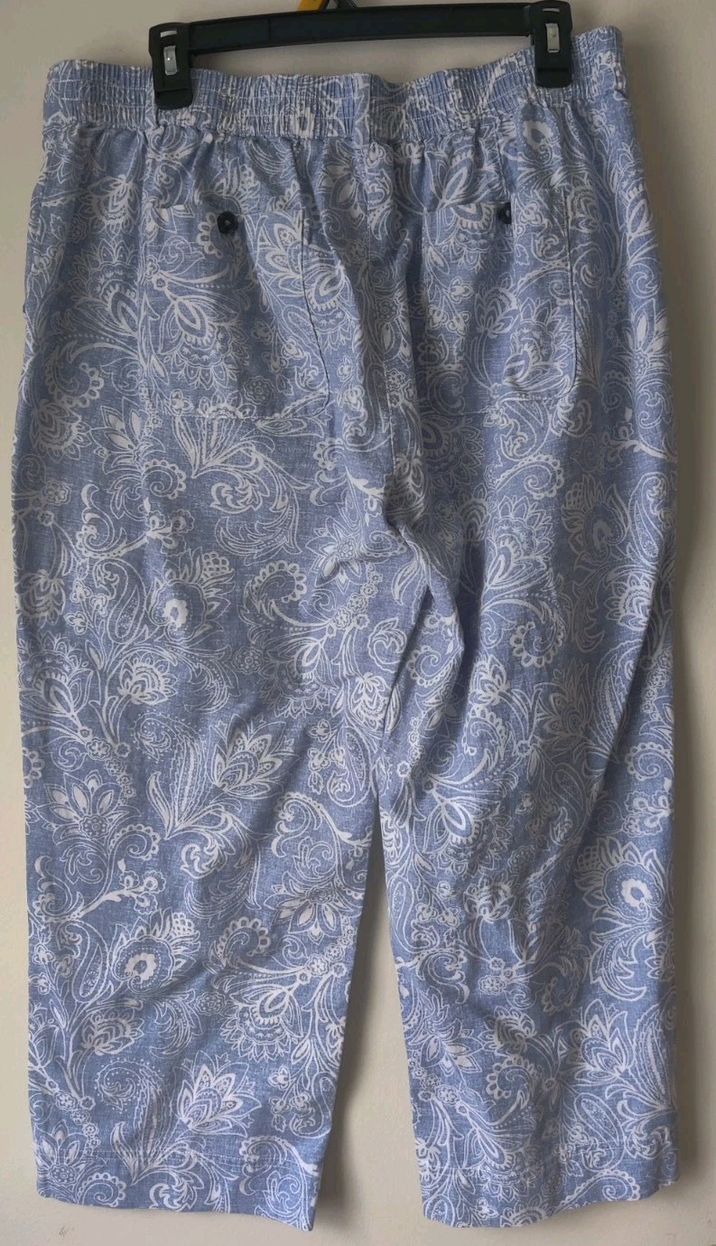 как выглядит Talbots Womens Wide Leg Crop Linen/Cotton Paisley Blue/White Pants Size 14 фото
