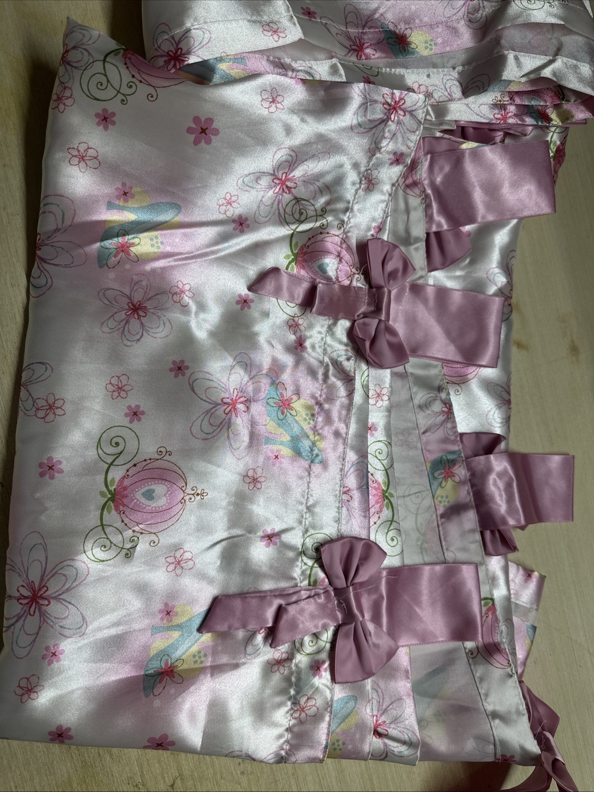 Disney Princess Cinderella Curtain Panel White Pink Bows Slipper 42 X 80