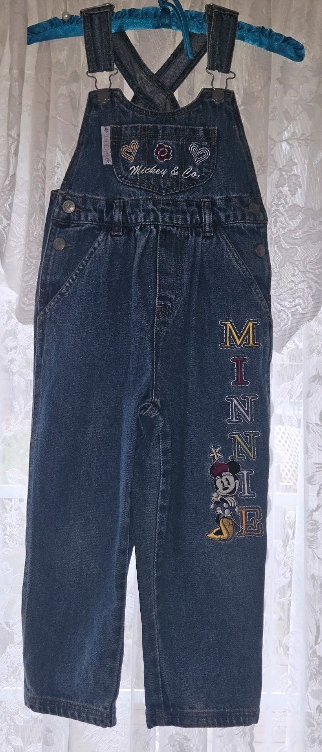 Vintage 1990s Girls Mickey Co Minnie Mouse Denim Overalls Disney Kids 5