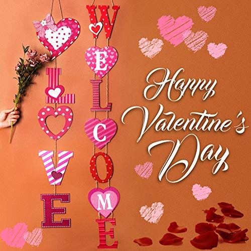 2 Pieces Valentine's Day Hanging Signs Welcome Love Hanging Wooden Signs