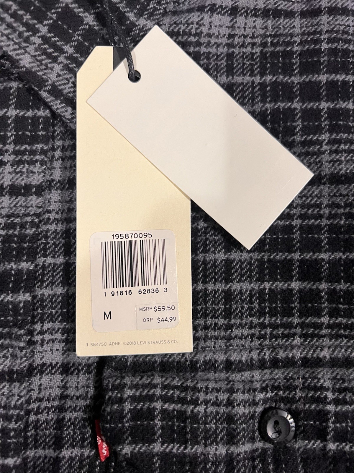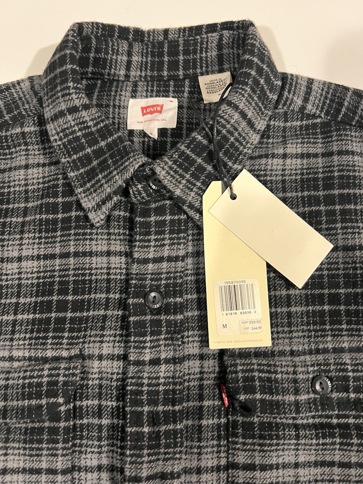 NWT Levi s Men Classic Worker Plaid Flannel Shirt Black Gray 100 Cotton M
