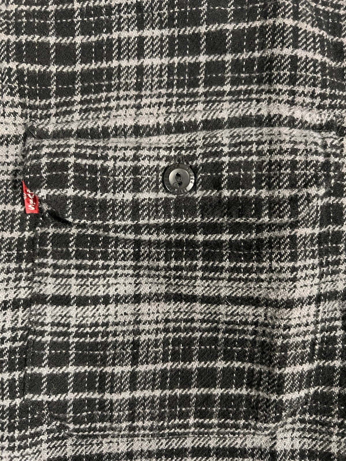 как выглядит NWT Levi s Men Classic Worker Plaid Flannel Shirt Black Gray 100 Cotton M фото