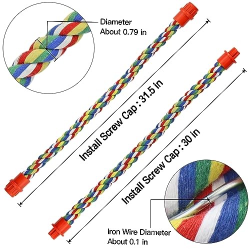 Bird Rope Perches for Parrots, Cockatiels, Parakeets, 31.5inch plastic nut
