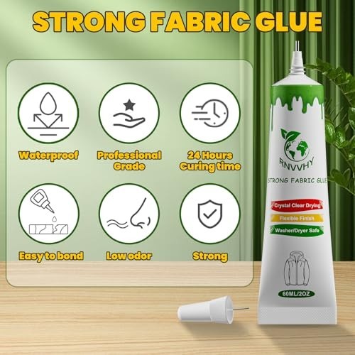 Super Strong Fabric Glue 60ml - Clear Washable Adhesive for Clothing, Patches, L
