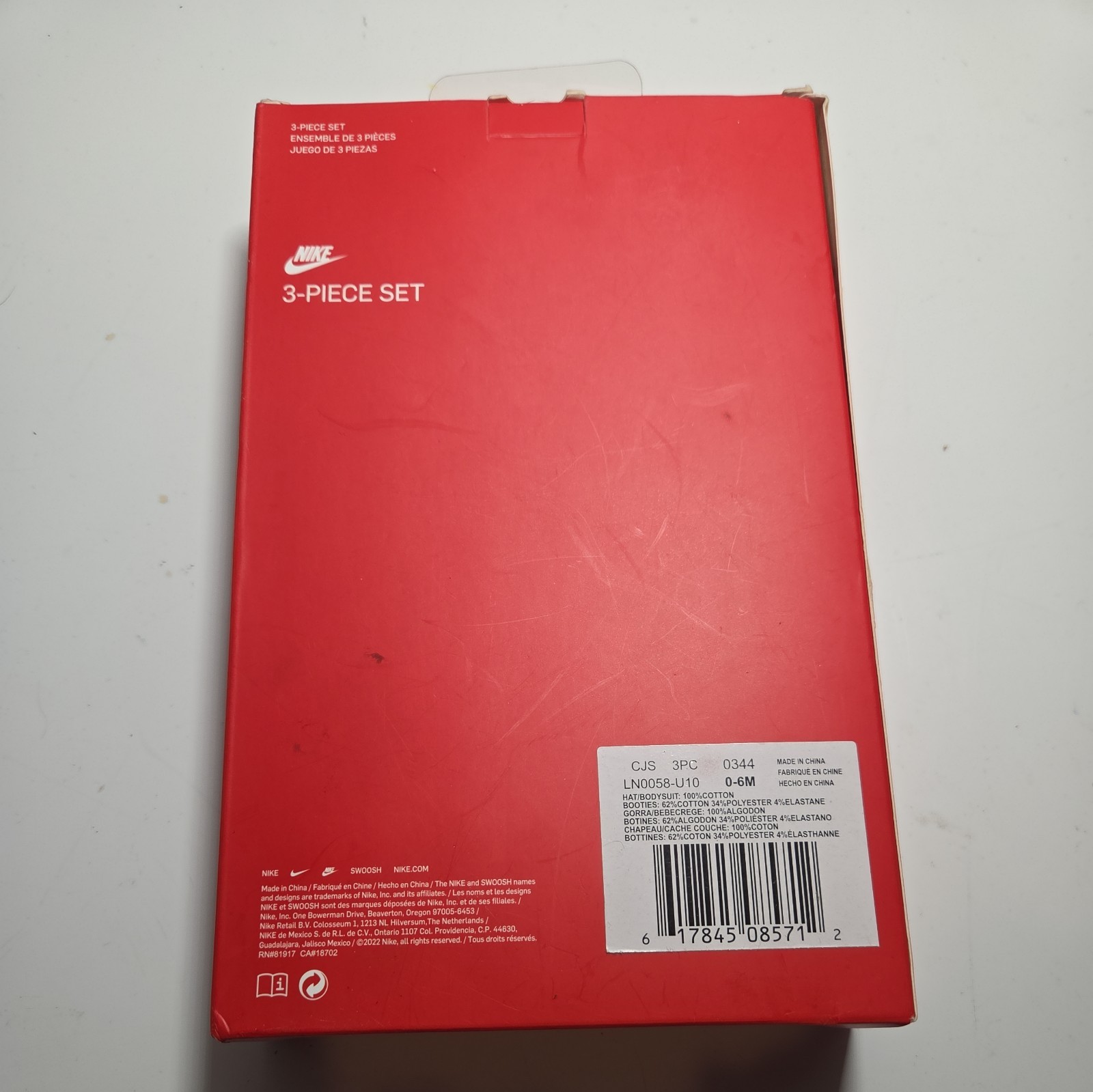 Nike Baby Boy 3 Piece Set- Red / Black - White - Size 0-6 Months - NEW