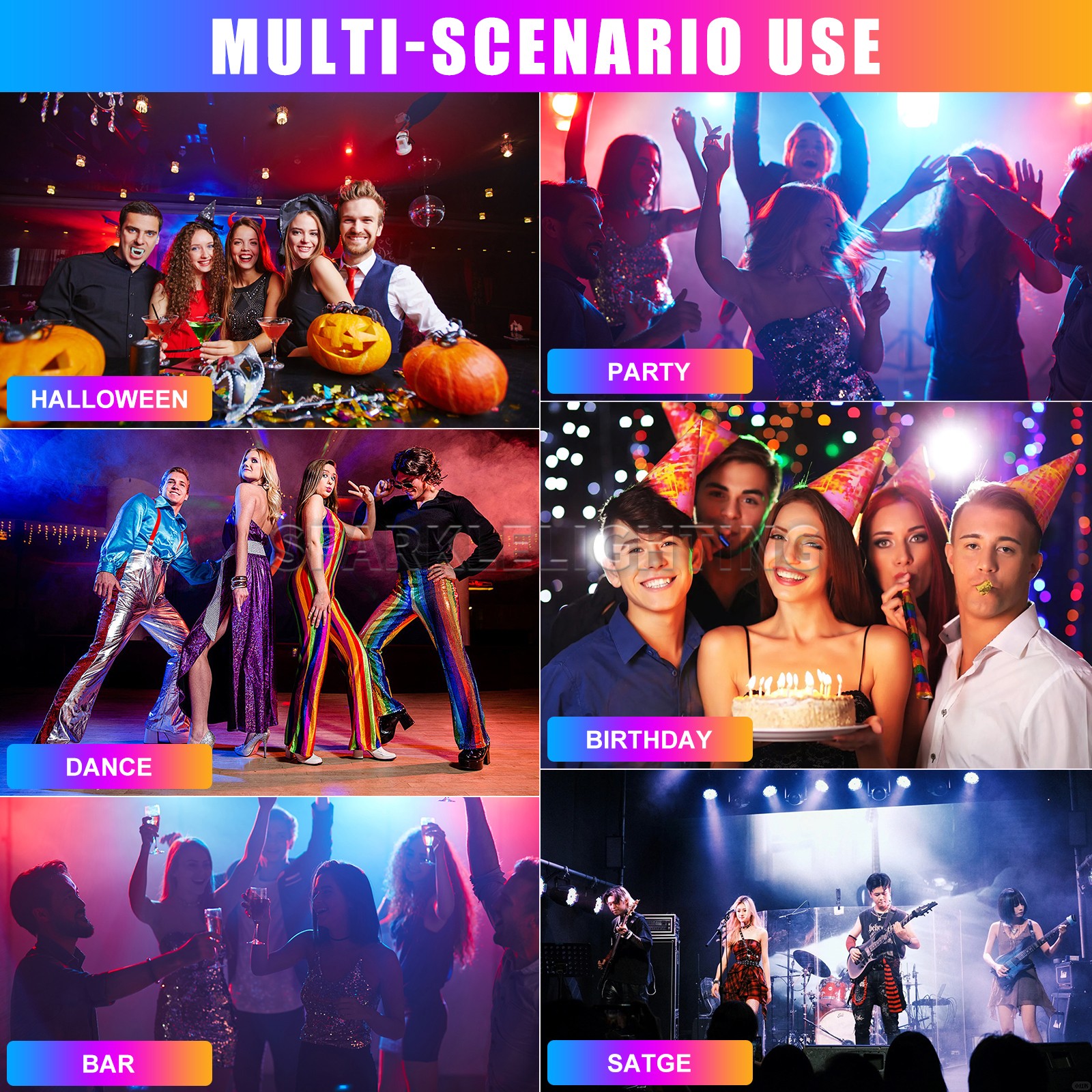 Lighting Effects: Beam, Color Mixing, Gobo, Spot, Strobe, Moonflower