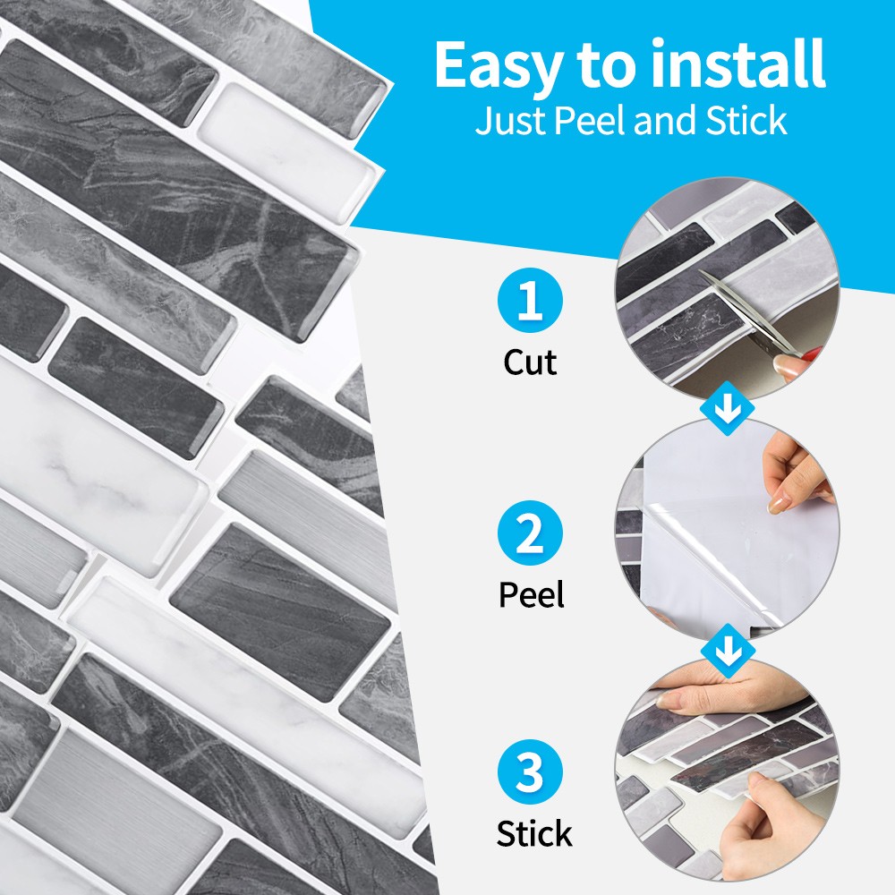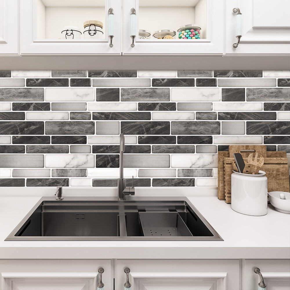 20PCS Self-adhesive Wall Tile Backsplash Tiles 12x12 Gray-White Marble Tile