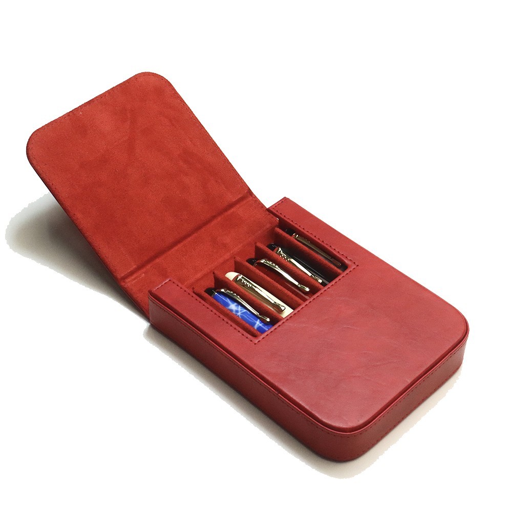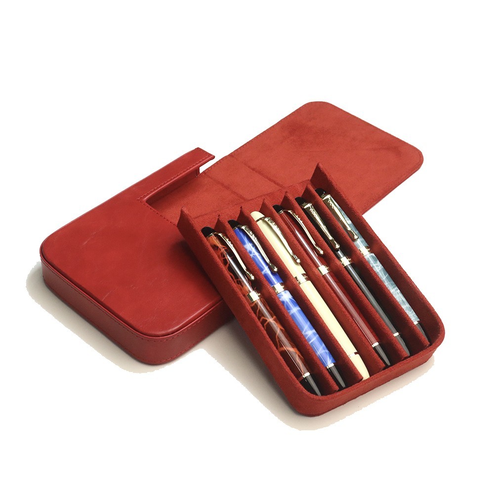 High Quality Leather 6 Slots Hard Fountain Pen Case Storage Box Organizer Gift