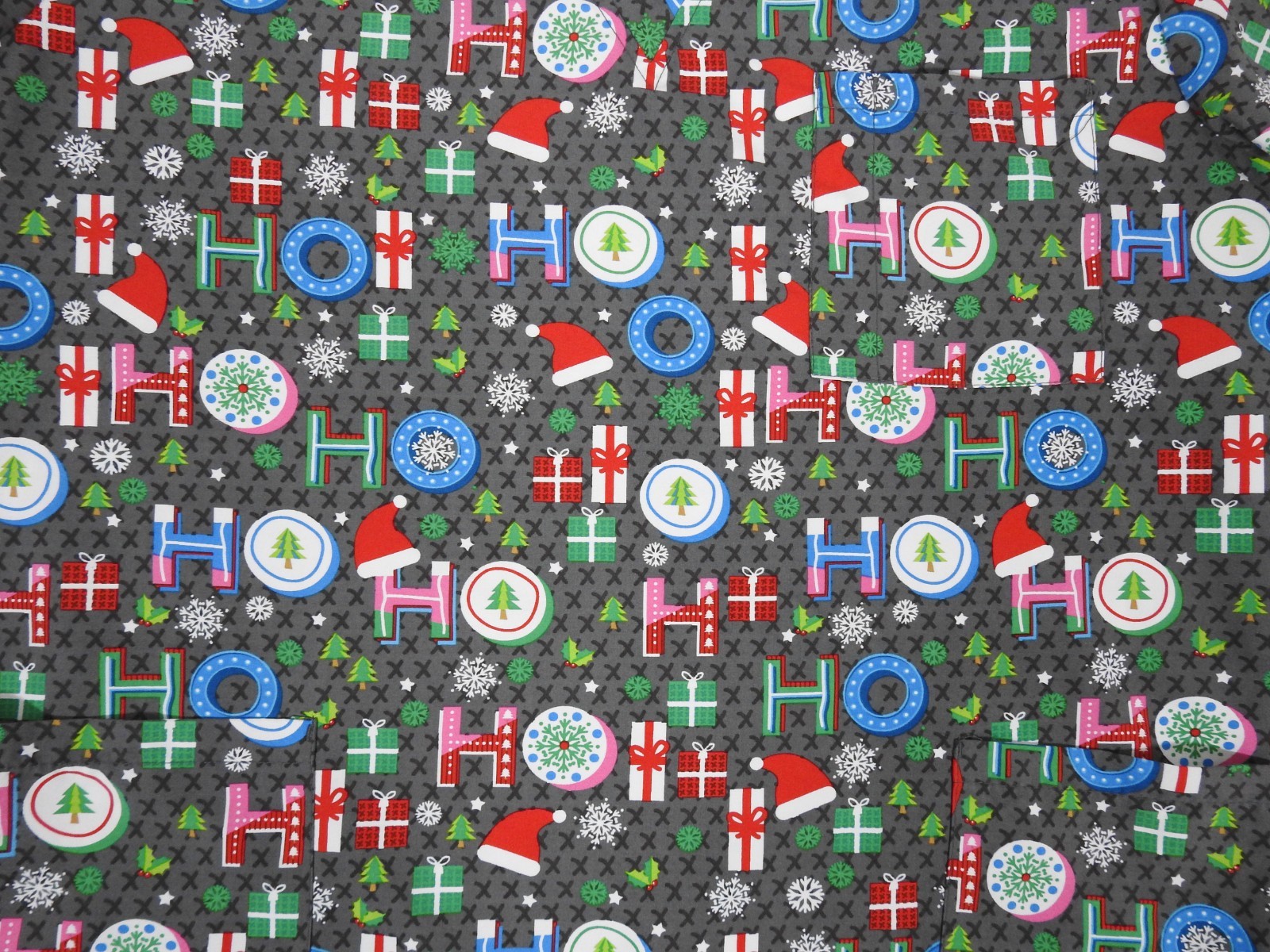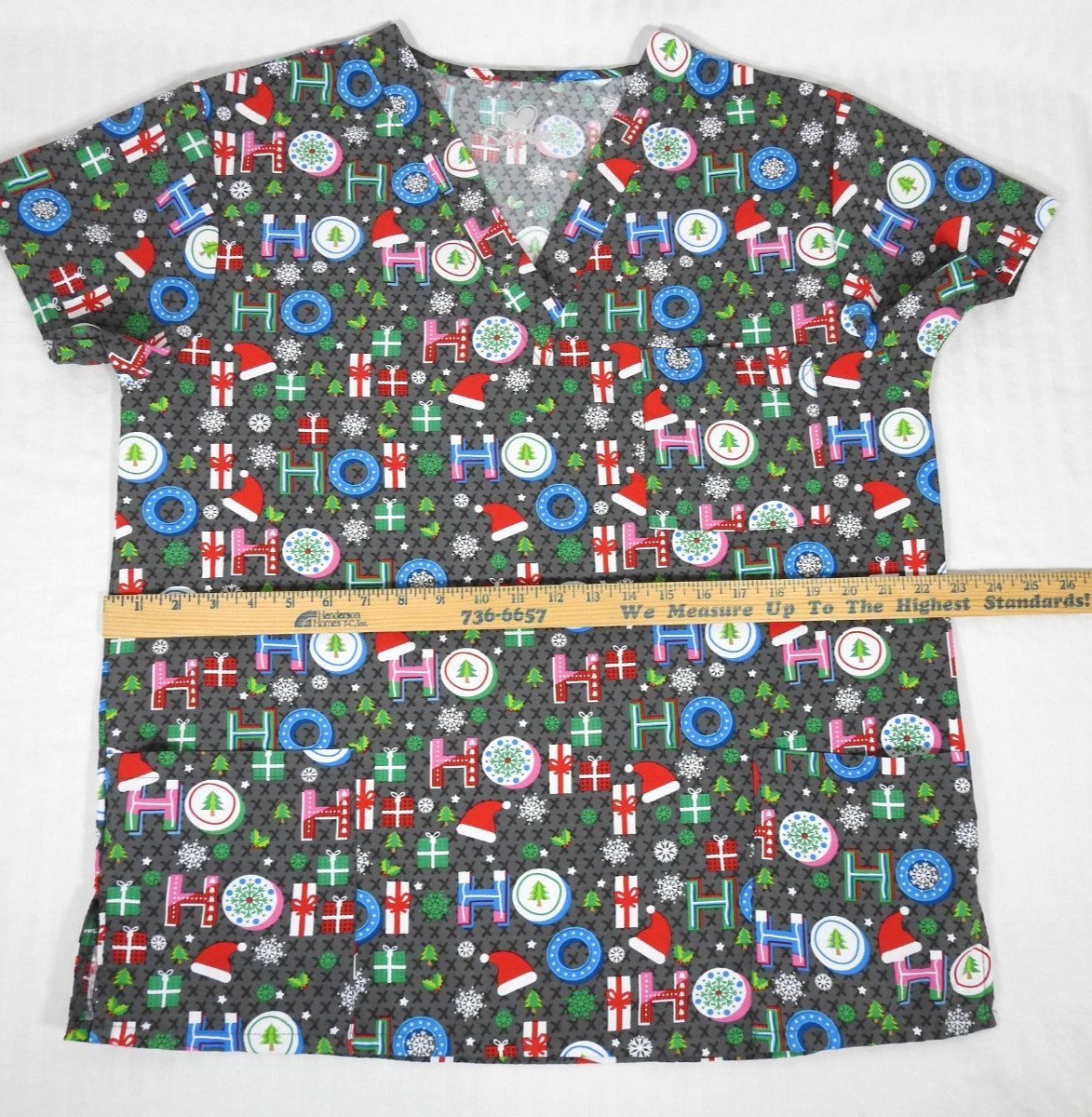 Women's I Love Scrubs Christmas Ho Ho Ho Medical Scrub Top Lrg. Santa Snowflakes