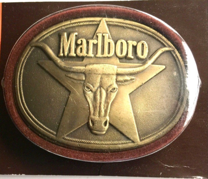 • VINTAGE 1987 MARLBORO SOLID BRASS LONGHORN STAR OF TEXAS BELT BUCKLE BRAND NEW