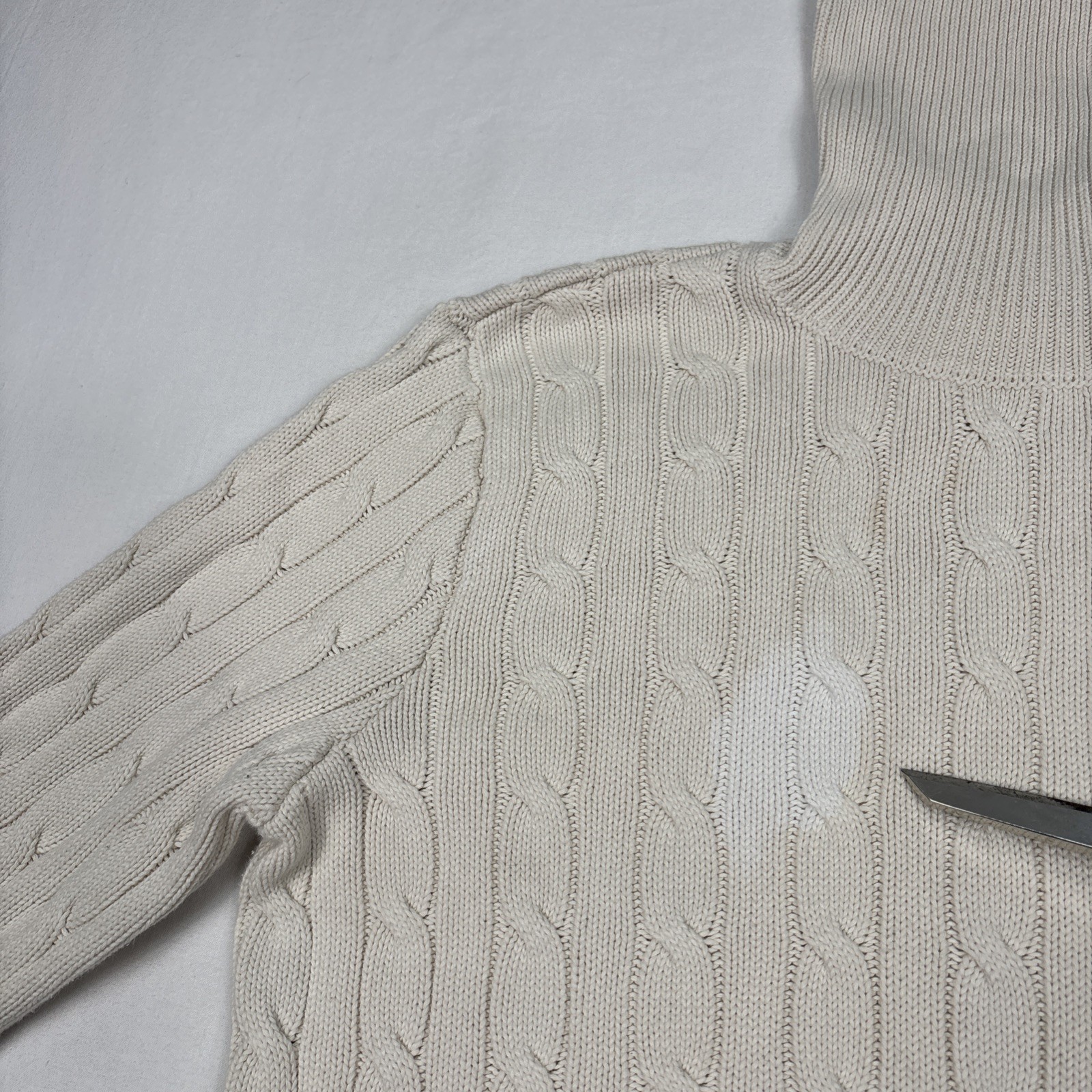 Vintage Ralph Lauren Sport Turtleneck Sweater Womens L Beige Cableknit Fisherman