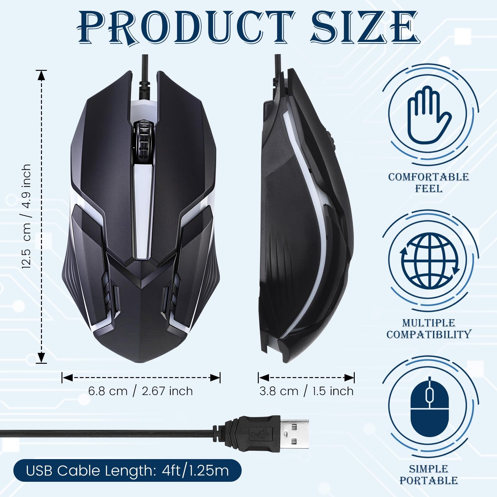 10 Pack USB Wired Mouse Bulk Black 1200 DPI RGB Optical 3 Button Ergonomic