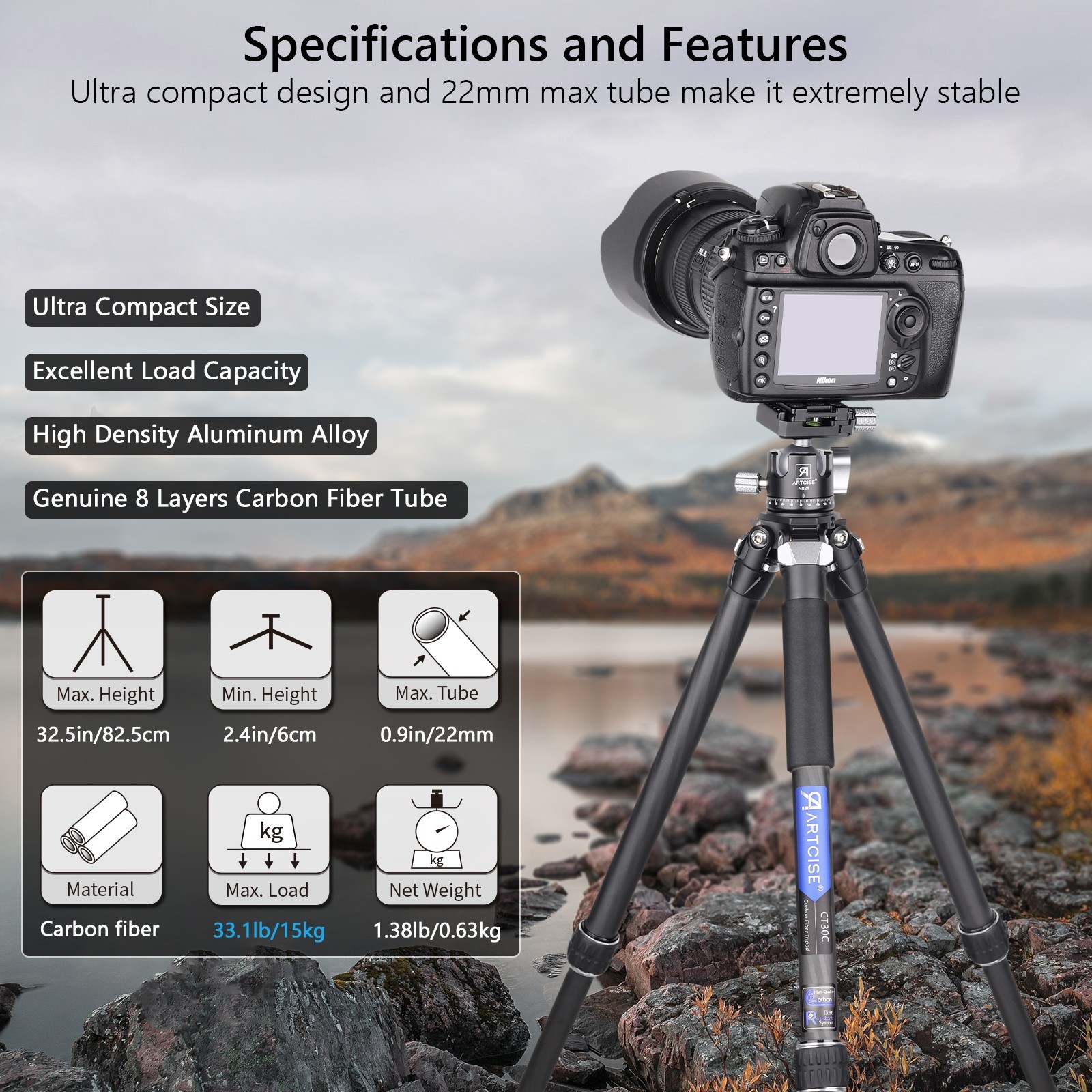 Mini Portable Carbon Fiber Tripod Lightweight Compact Travel Tripod Stand