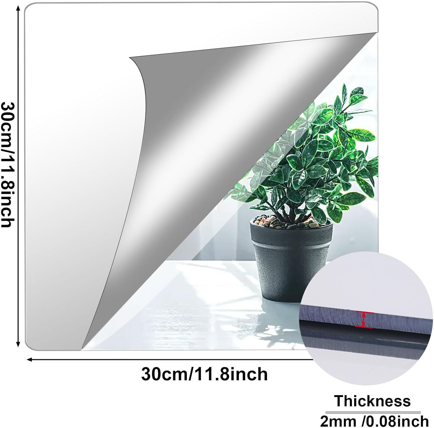 4 Pack Self Adhesive Acrylic Mirror, 12X 12 Inch Mirror Tiles,Flexible Plasti...