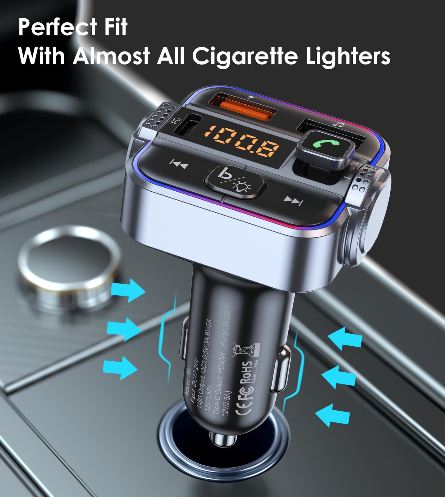 Bluetooth 5.3 FM Transmitter Car Adapter, Dual Micphone Hands-Free Calls Wire...