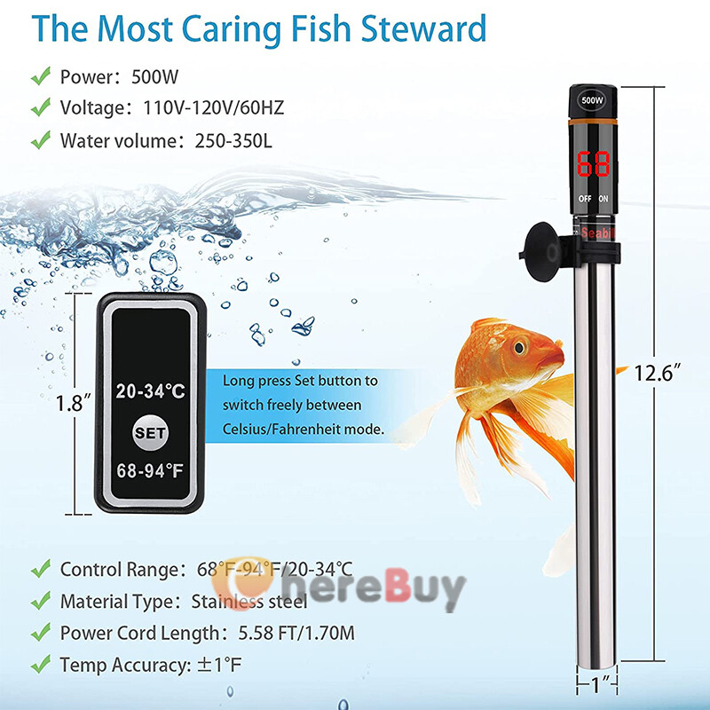500W Digital Aquarium Heater Submersible Fish Tank Thermostat Anti Explosion