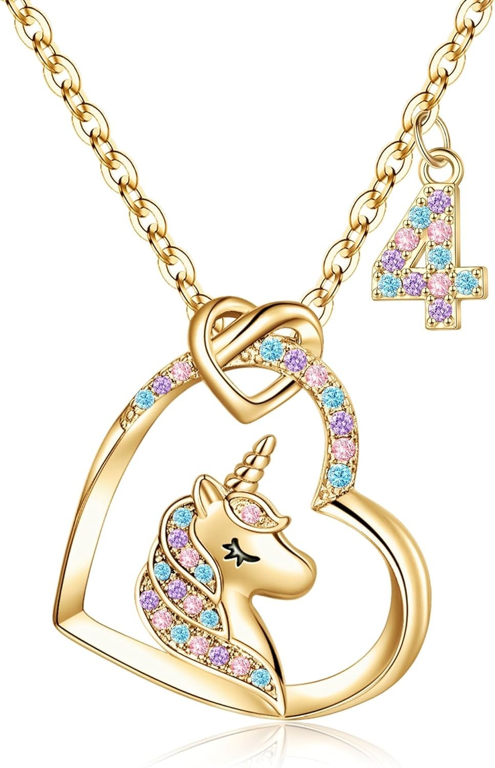 Magical Unicorn Necklace for Girls 3-16 - 14K Gold-Plated Gift with CZ Heart
