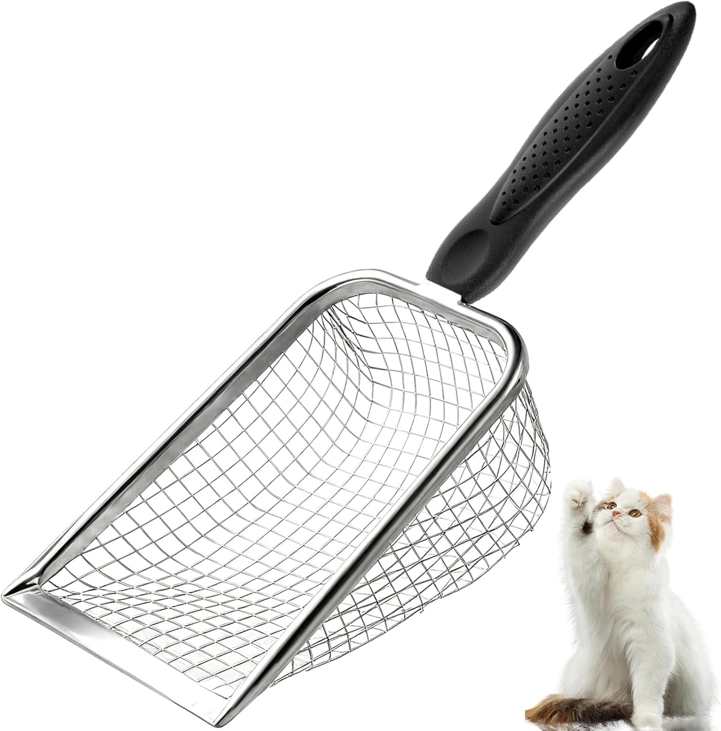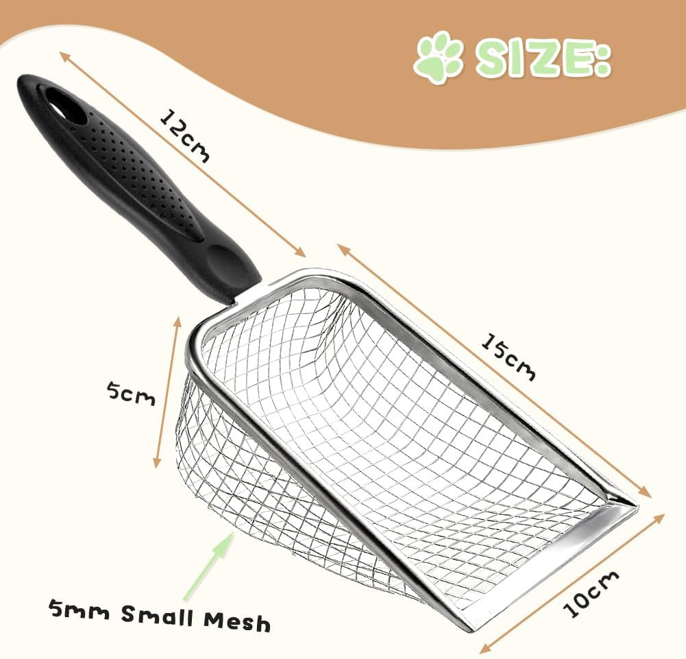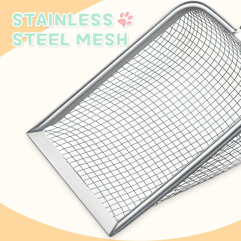 Cat Litter Scoop Long Handle Scooper Rustproof Stainless Steel Mesh Non-Slip