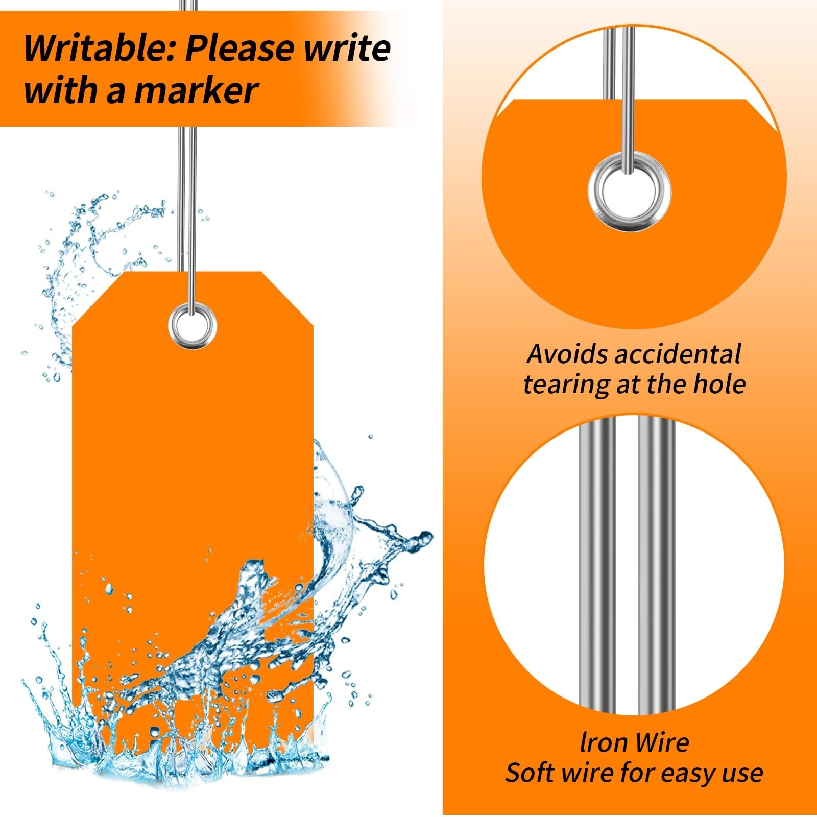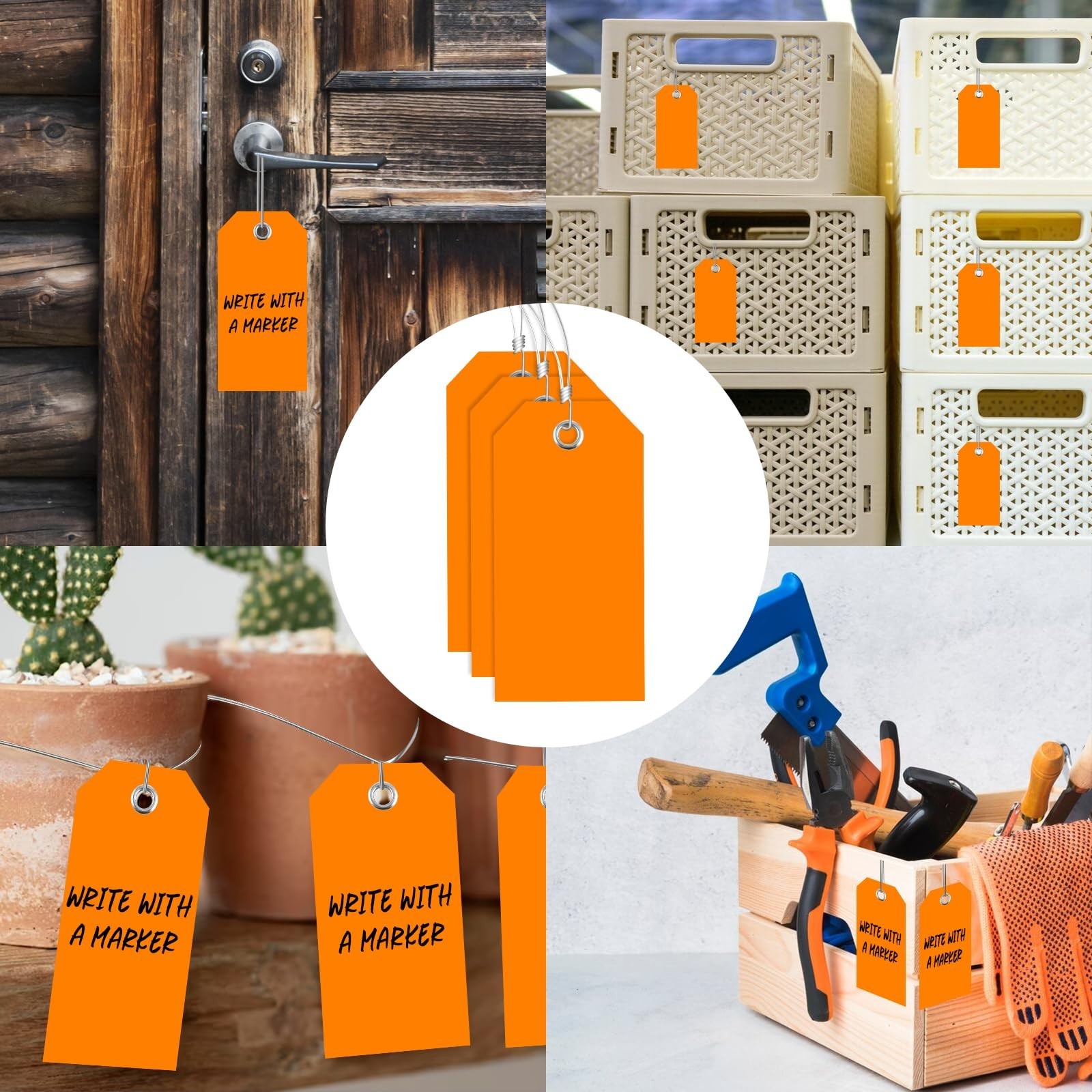 100 Pieces 2x4 Inch Orange Plastic Shipping Tags With Wires - Heavy Duty Wate...