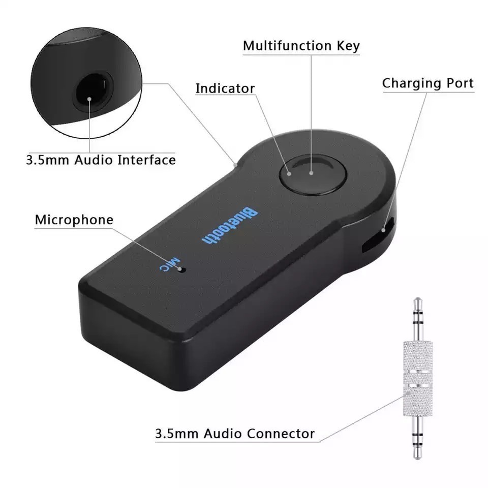 Wireless Bluetooth Receiver 3.5mm AUX Audio Stereo Music Home Car Adapter Black