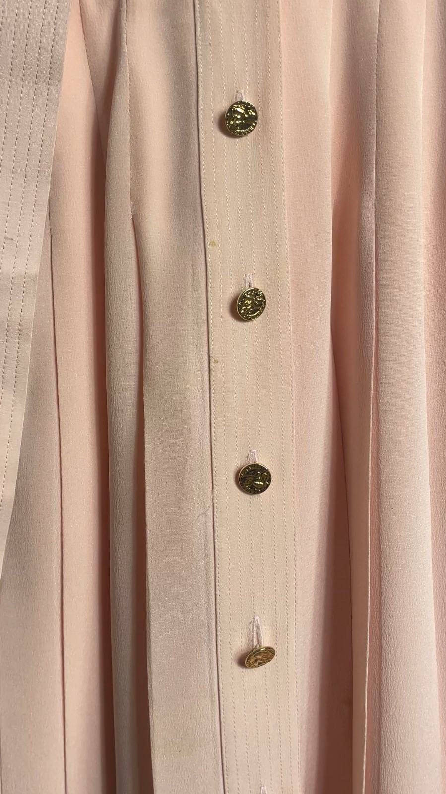 как выглядит CHANEL BOUTIQUE VINTAGE SILK DRESS Pink Pleated Gold Button SS 1986 France фото