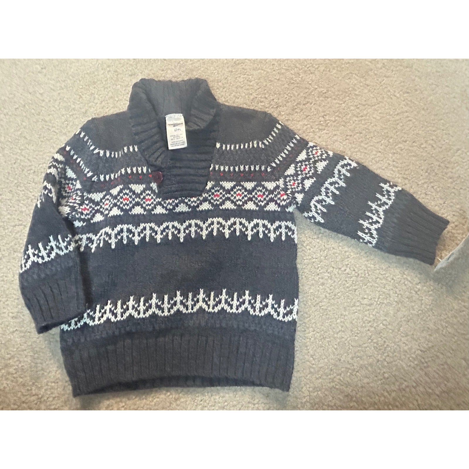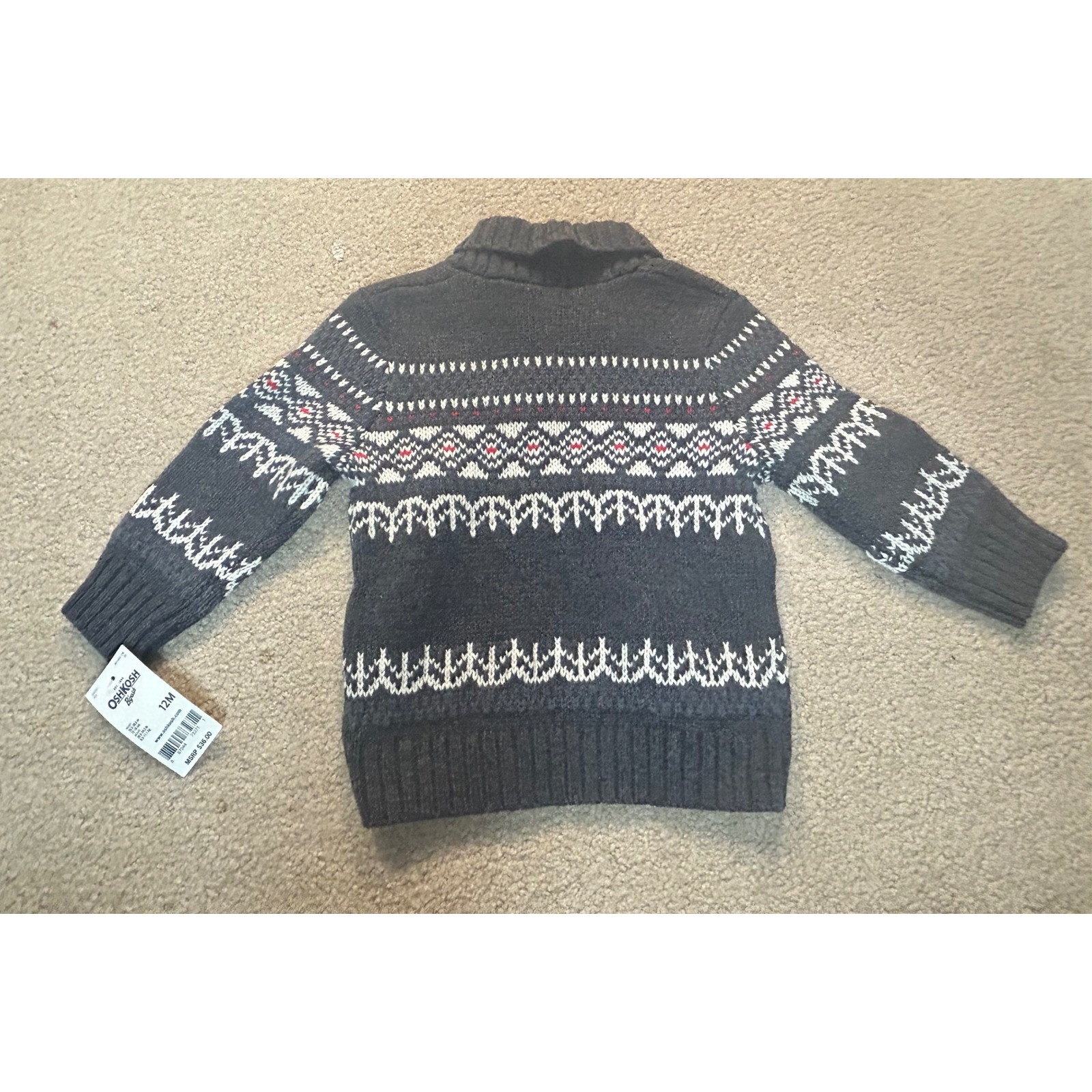 как выглядит OshKosh Bgosh Toddler Boys 12M Gray Fair Isle Shawl Collar Knit Sweater фото