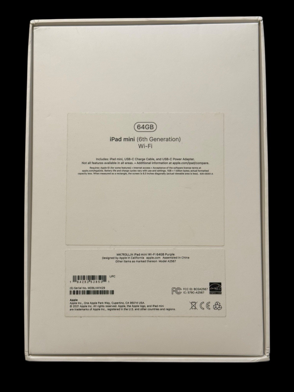 OEM EMPTY BOX - iPad mini 6th Generation - Purple - Wi-Fi - 64GB