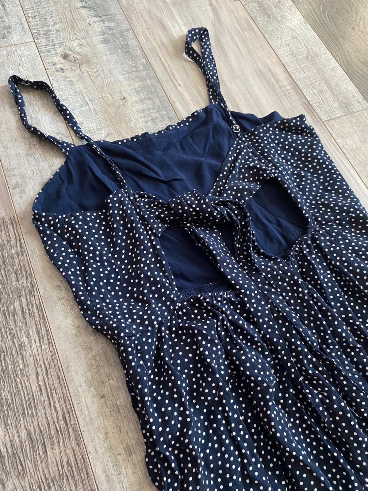как выглядит Abercrombie Fitch Dark Navy Polka Dot Wide Leg Open Back Jumpsuit Size Medium фото