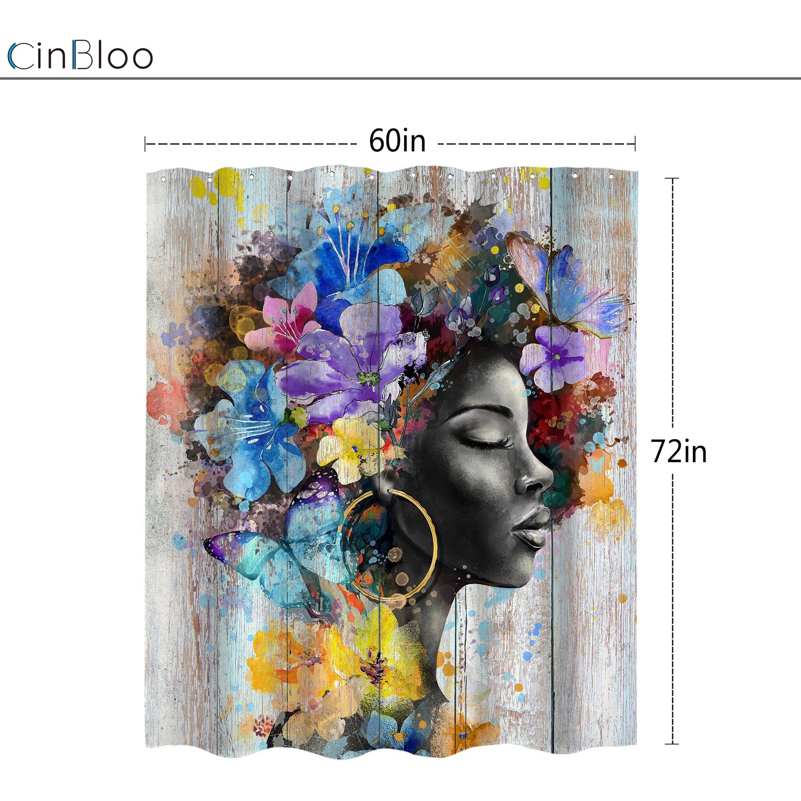 как выглядит Black Girl Shower Curtain 60Wx72H African American Rustic Flower Black Woman ... фото