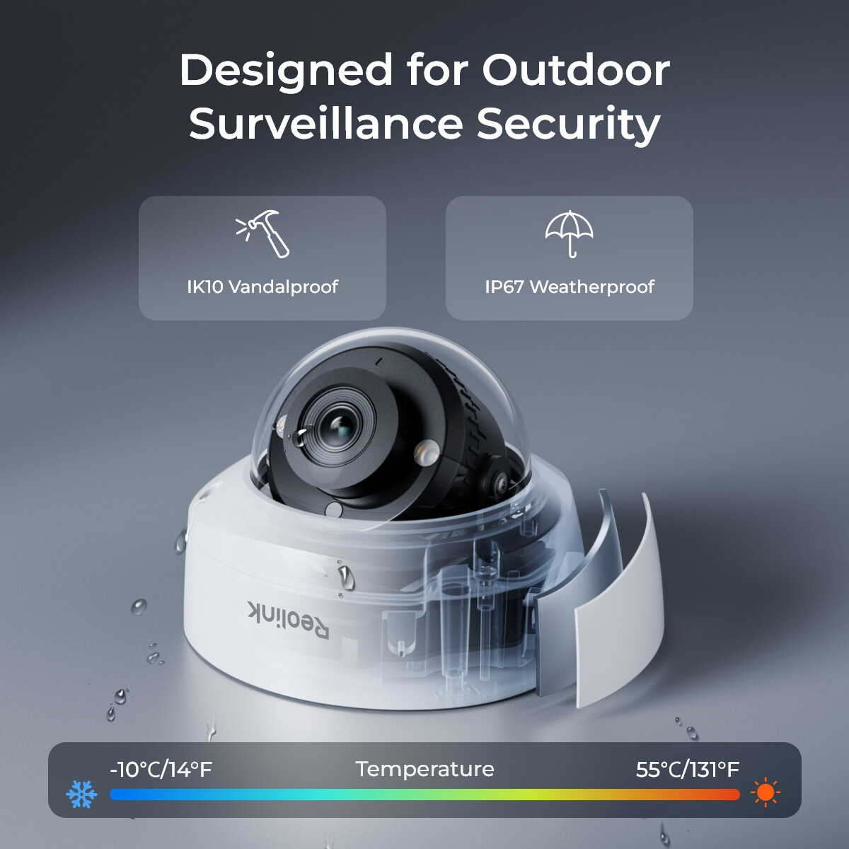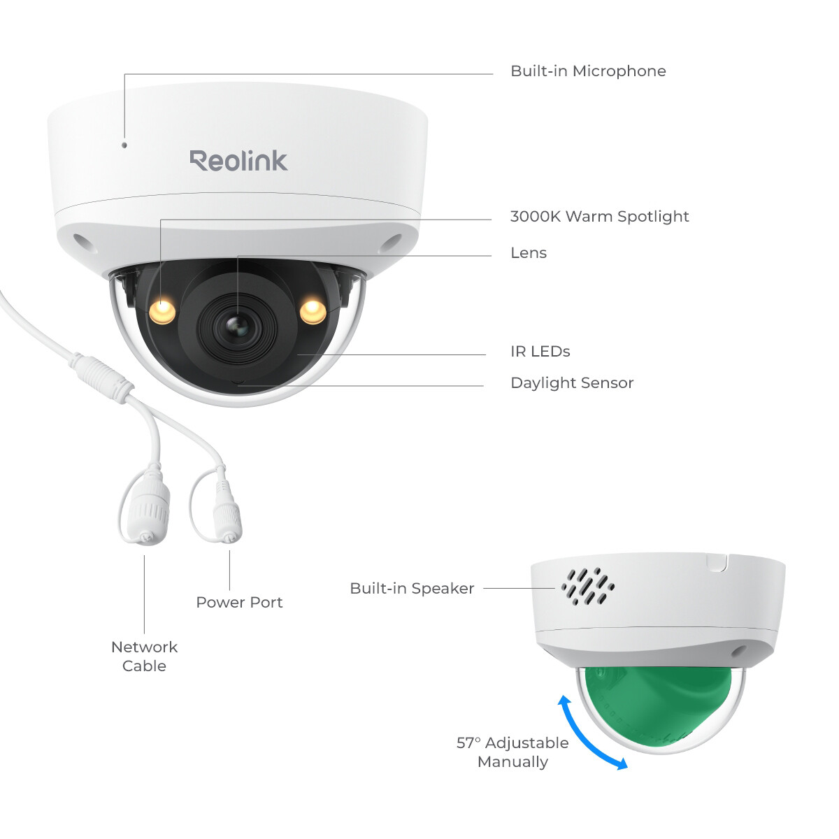 Особенности: Night Vision, Outdoor/Weatherproof, Time Lapse, Two-way audio, Color Night Vision, 125° Wide Viewing Angle, IK10 Vandal-Proof, Smart Detection, Plug & Play, IP67 Weatherproof, Free APP