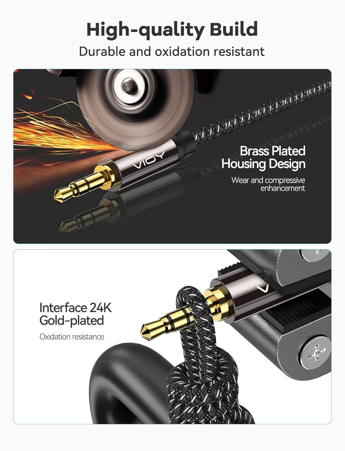 30 Ft Braided Aux Cable, 3.5mm Male to Male, Copper Shell, Hi-Fi Sound Stereo