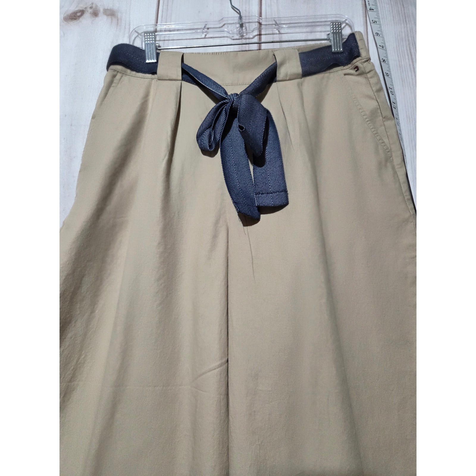 Tommy Hilfiger Ladies Medium Wide Leg Pants with Tie Belt Khaki Casual Trousers