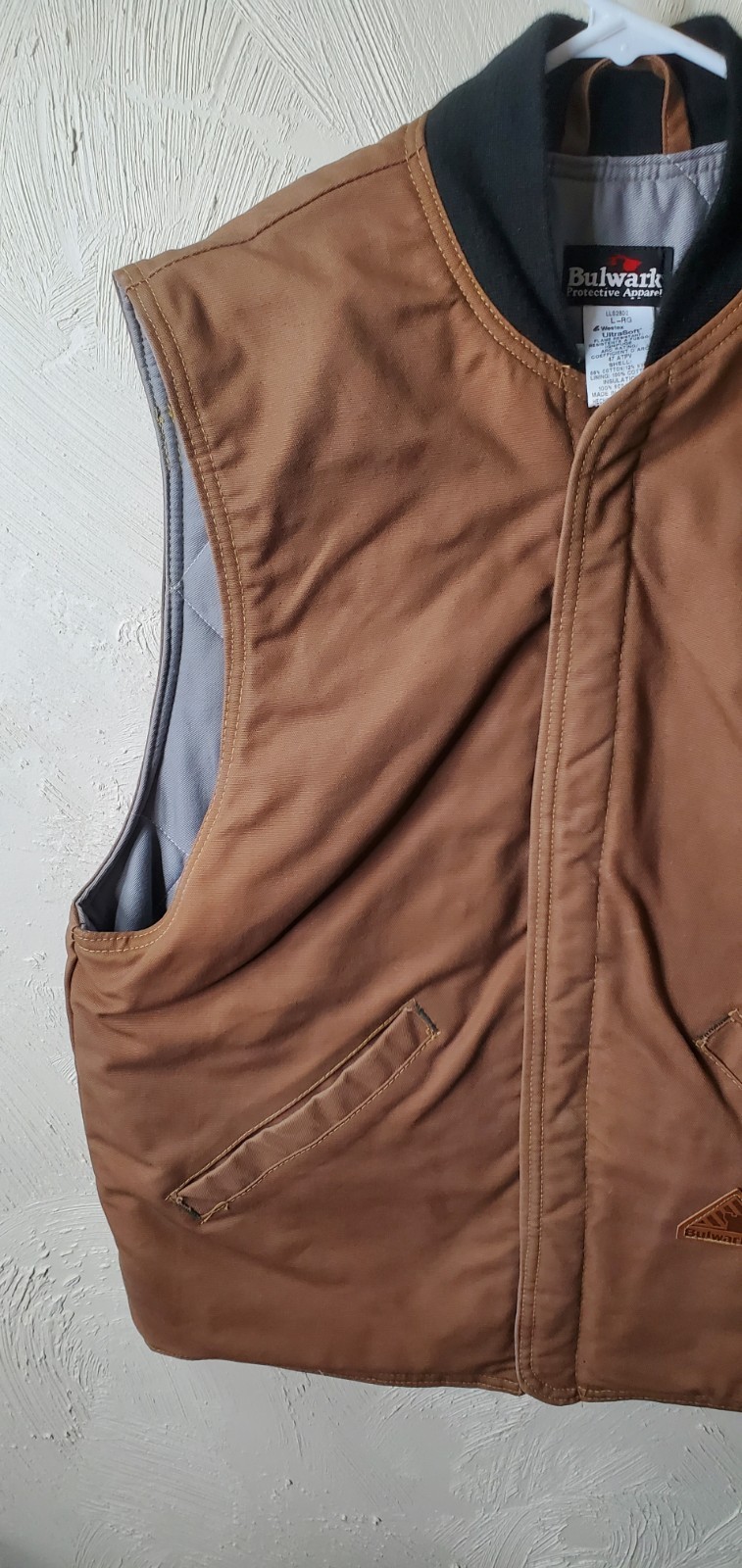 Bulwark EXCEL FR Jacket Liner Brown Mens LG Reg LLS2BD2 Snap Closure Fire Resis