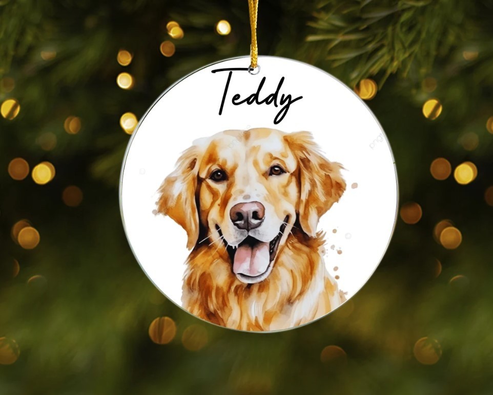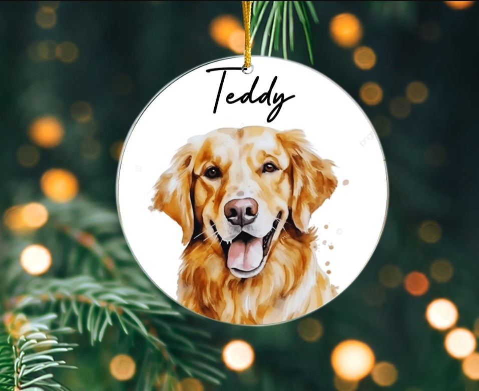• Dog Memorial Ornament, Custom Dog Photo Ornament, Pet Memorial Gift