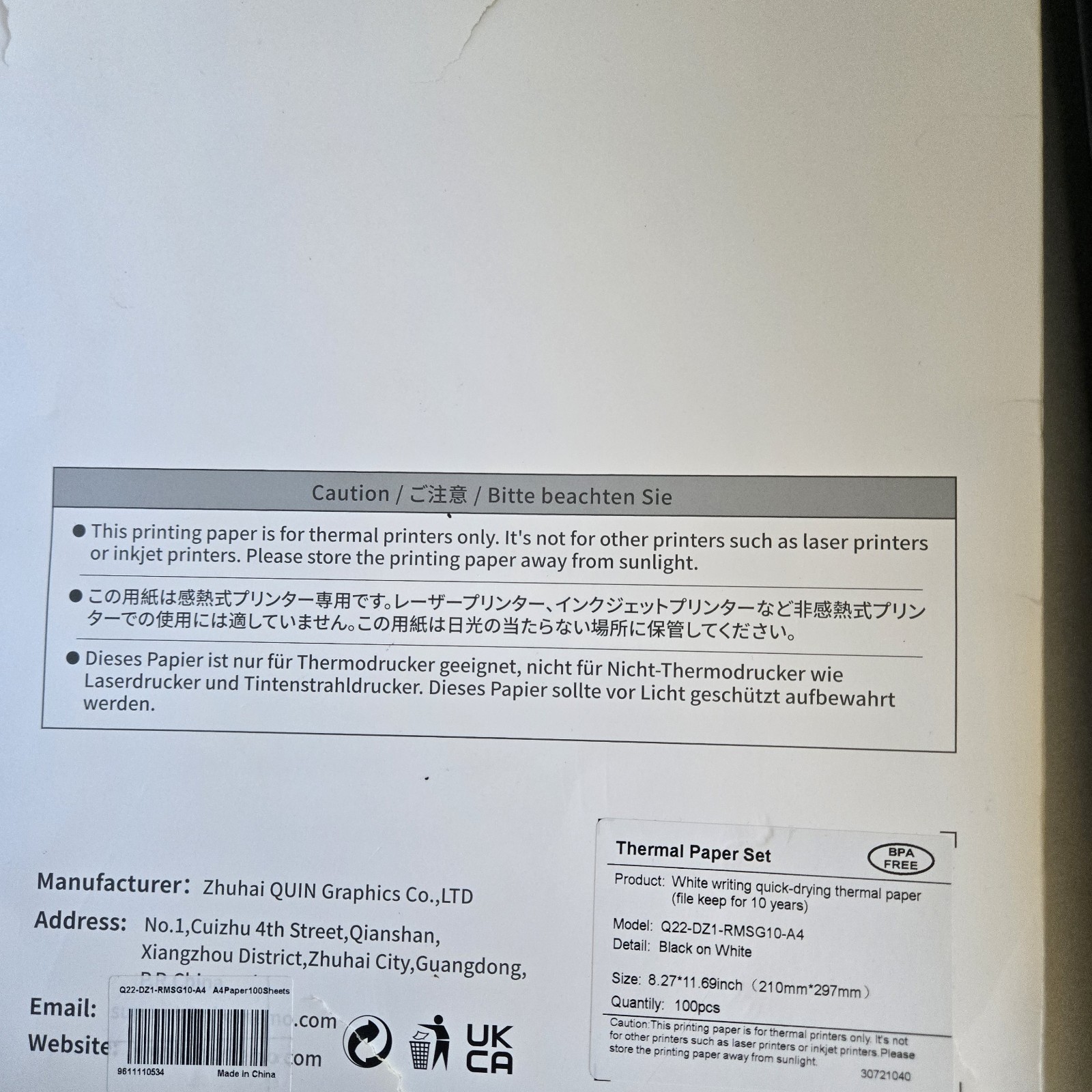 Supported Paper Size: A4 (210 x 297 mm)