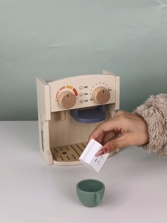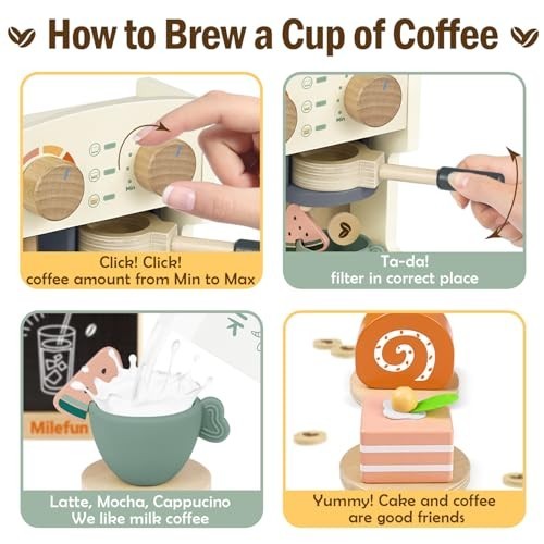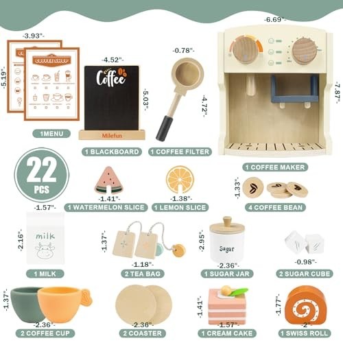 22PCS Wooden Coffee Play Set - Pretend Espresso Maker Toy for Kids 3-8, Montesso